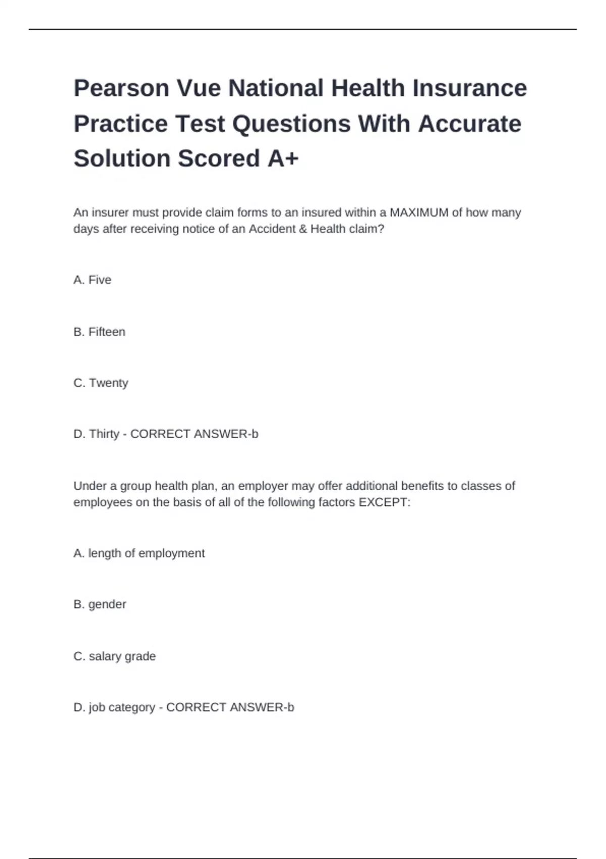 c. The Interest credited to the policy is based off of the performance of a stock market index life the S&P 500 - CORRECT ANSWER-Which of the following statements about Equity Indexed Life insurance is TRUE? a. The policyowner can decide which separate accounts to invest the policy's cash values into b. The insured/owner bears all risk regarding cash surrender value, as negative stock market performance can cause the cash values to decrease c. The interest credited to the policy is based off of the performance of a stock market index like the S&P 500 d. To sell Equity Indexed Life, a producer only needs a securities license a. Single Premium Immediate Annuity - CORRECT ANSWER-Susan, age 65, inherits a substantial sum of money and wants to have the money distributed to her over the rest of her life starting next month. Which product offered by the life insurance industry will allow her to accomplish her objective? a. Single Premium Immediate Annuity b. Single Premium Deferred Annuity c. Flexible Premium Deferred Annuity d. Flexible Premium Immediate Annuity a. Life Only - CORRECT ANSWER-All of the following annuity income benefits payouts options will affect the amount or duration of payout, except for: a. Life Only b. Interest Only c. Fixed Amount d. Fixed Period