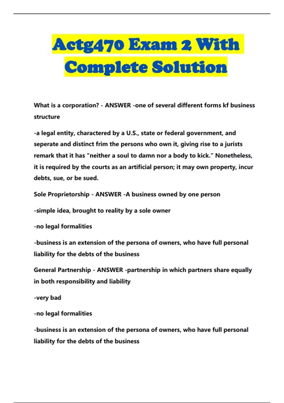 Actg470 Exam 2 With Complete Solution...