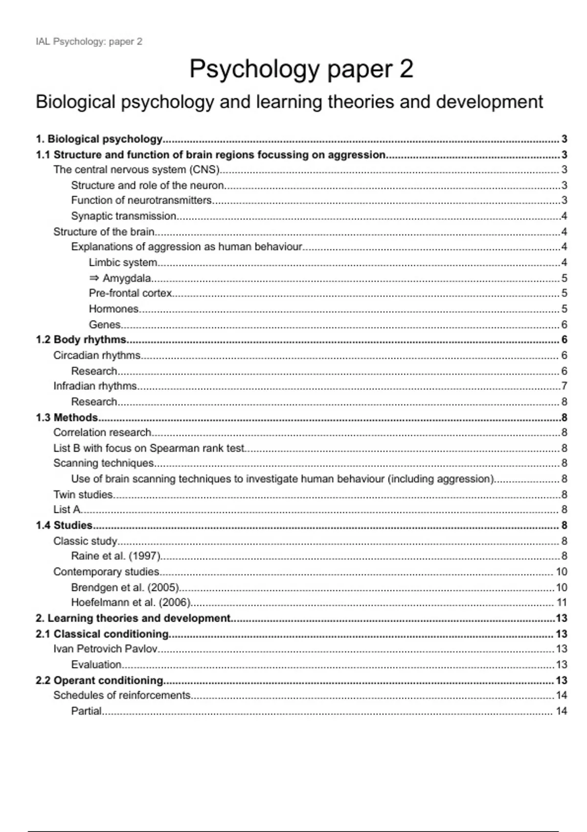 A study guide and summary for the Edexcel International A-Level psychology exams. I wrote this while I was studying IAL psychology because there is no book available for the course, and with this summary I received an A* in the 2024 examination. This is the first part of paper 2: Biological psychology. Each document was originally separated and organised in accordance to the exam papers, so certain title or final documents may appear slightly odd.