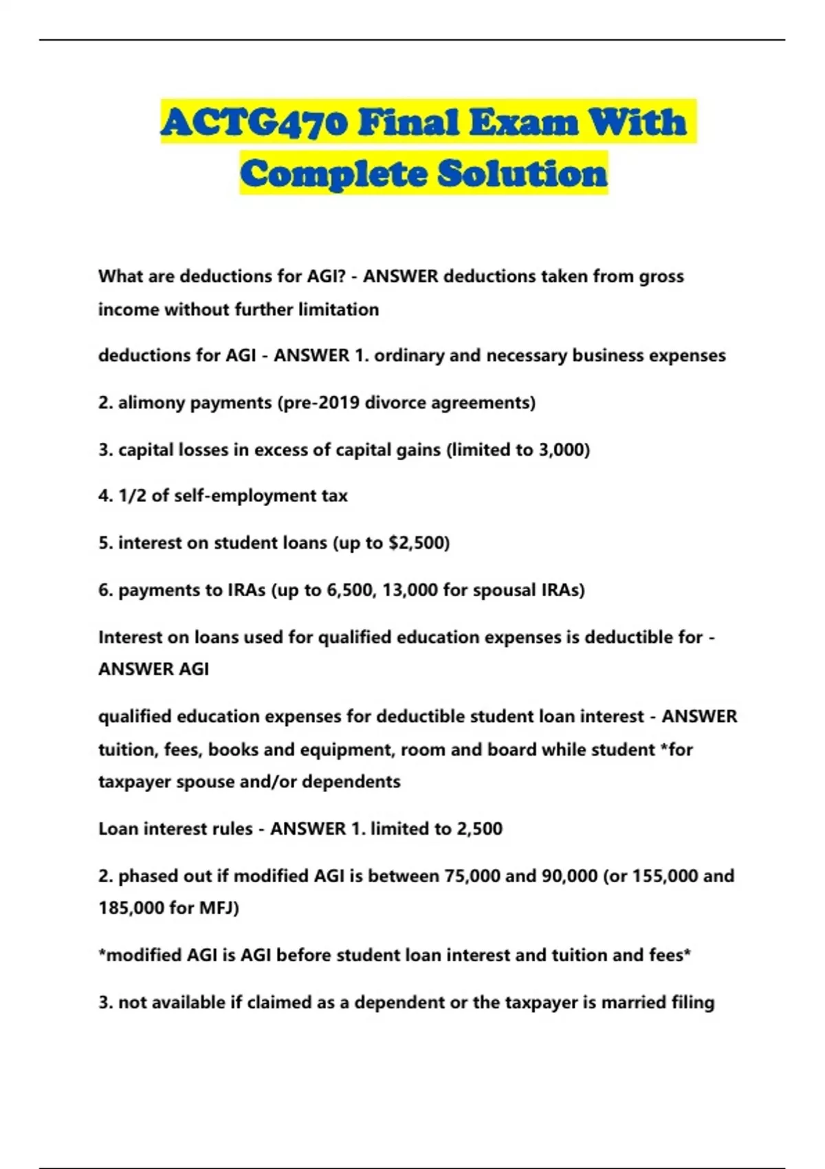 What are deductions for AGI? - ANSWER deductions taken from gross