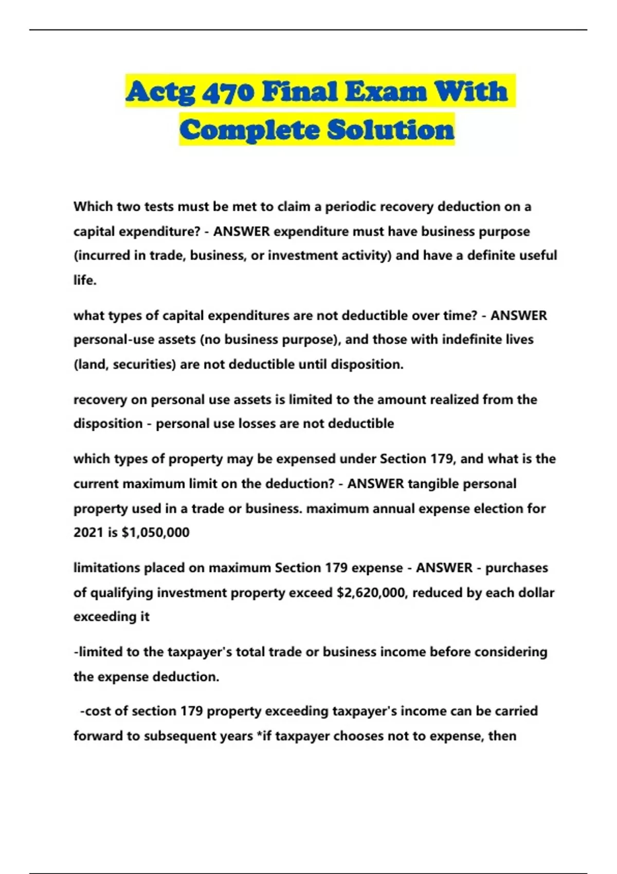 Actg 470 Final Exam With