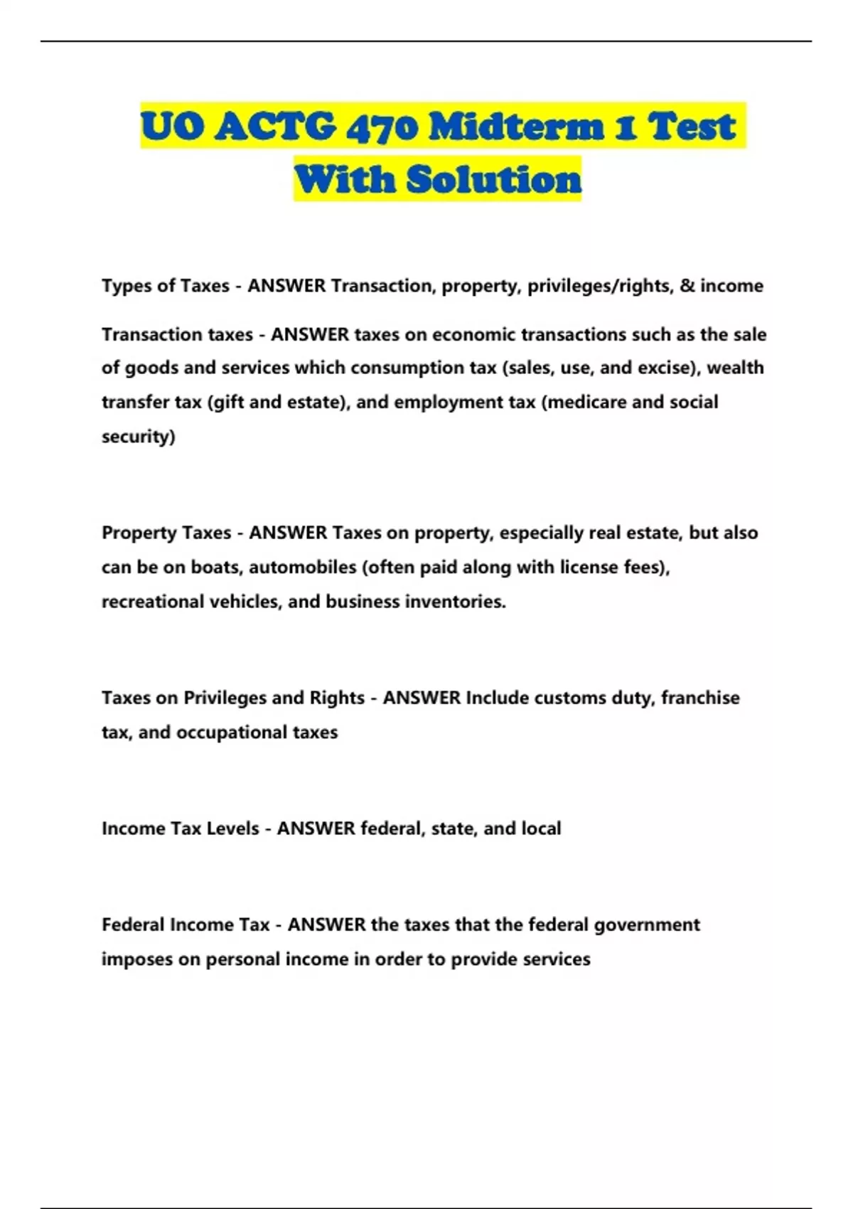 Types of Taxes - ANSWER Transaction, property, privileges/rights, & income
