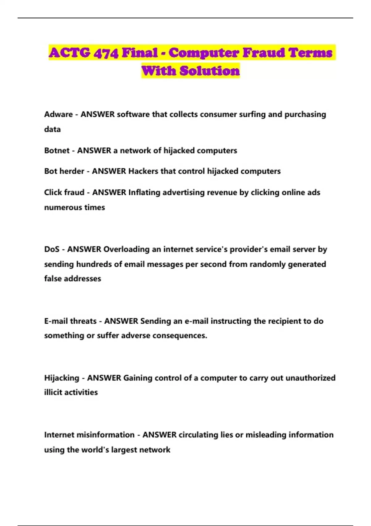 ACTG 474 Final - Computer Fraud Terms With Solution