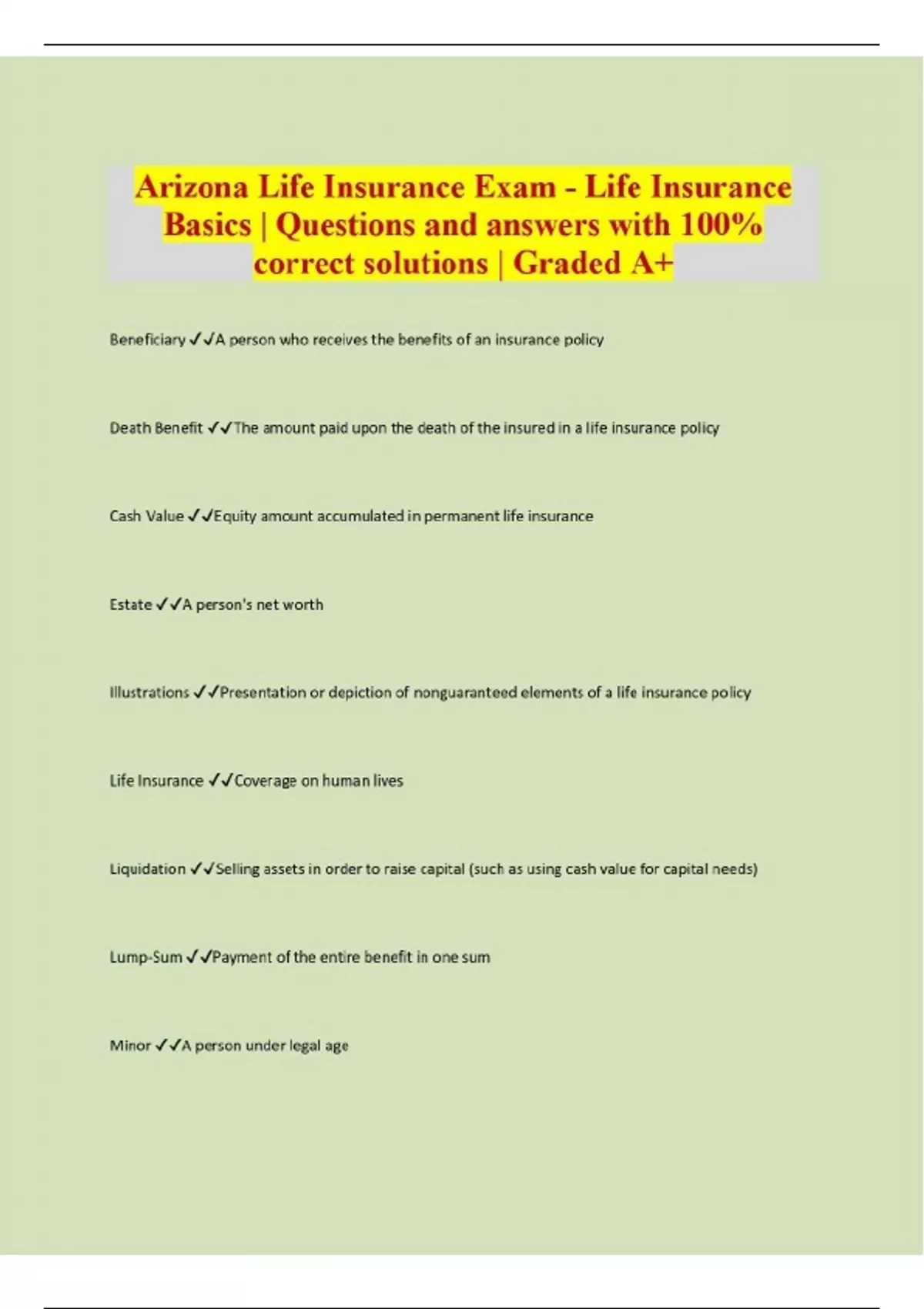 Arizona Life Insurance Exam - Life Insurance Basics | Questions and answers with 100% correct solutions | Graded A+