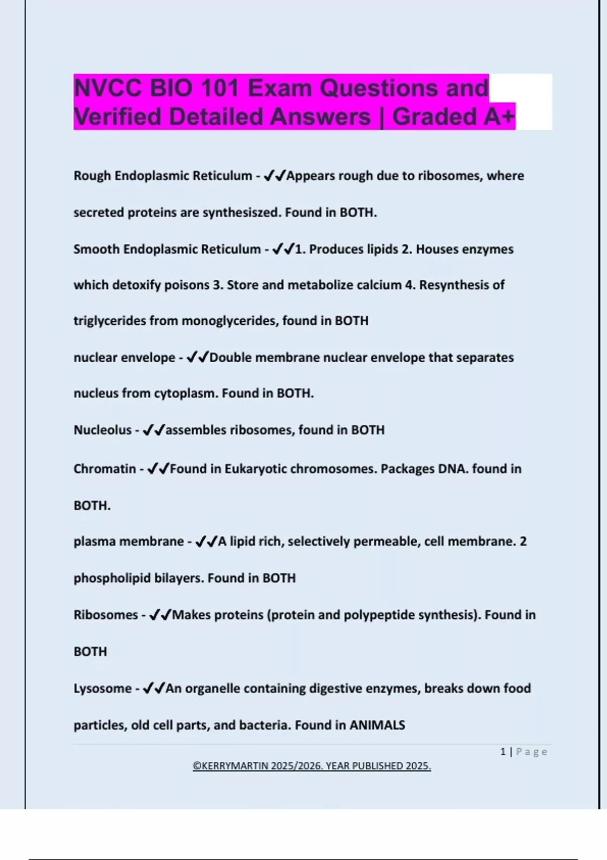 Nucleolus - ✔✔assembles ribosomes, found in BOTH