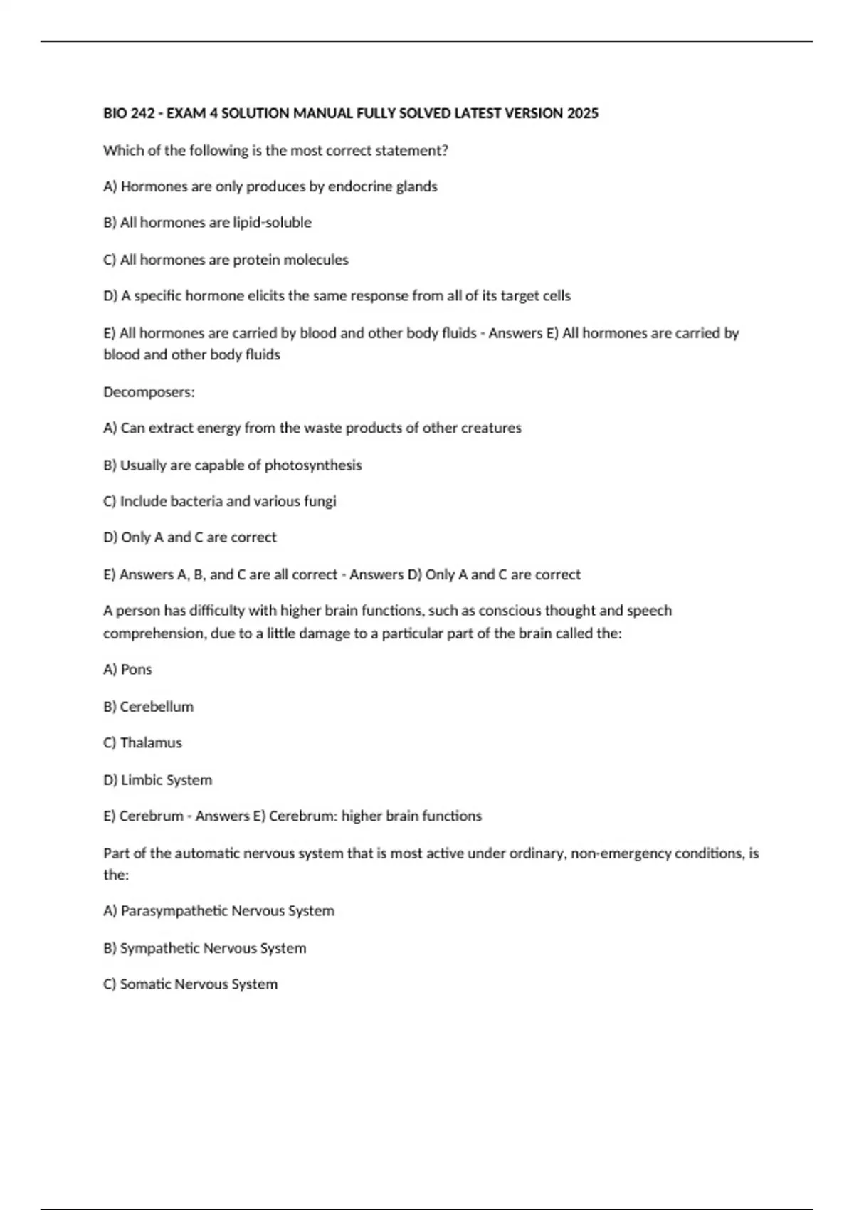 E) Cerebrum - Answers E) Cerebrum: higher brain functions