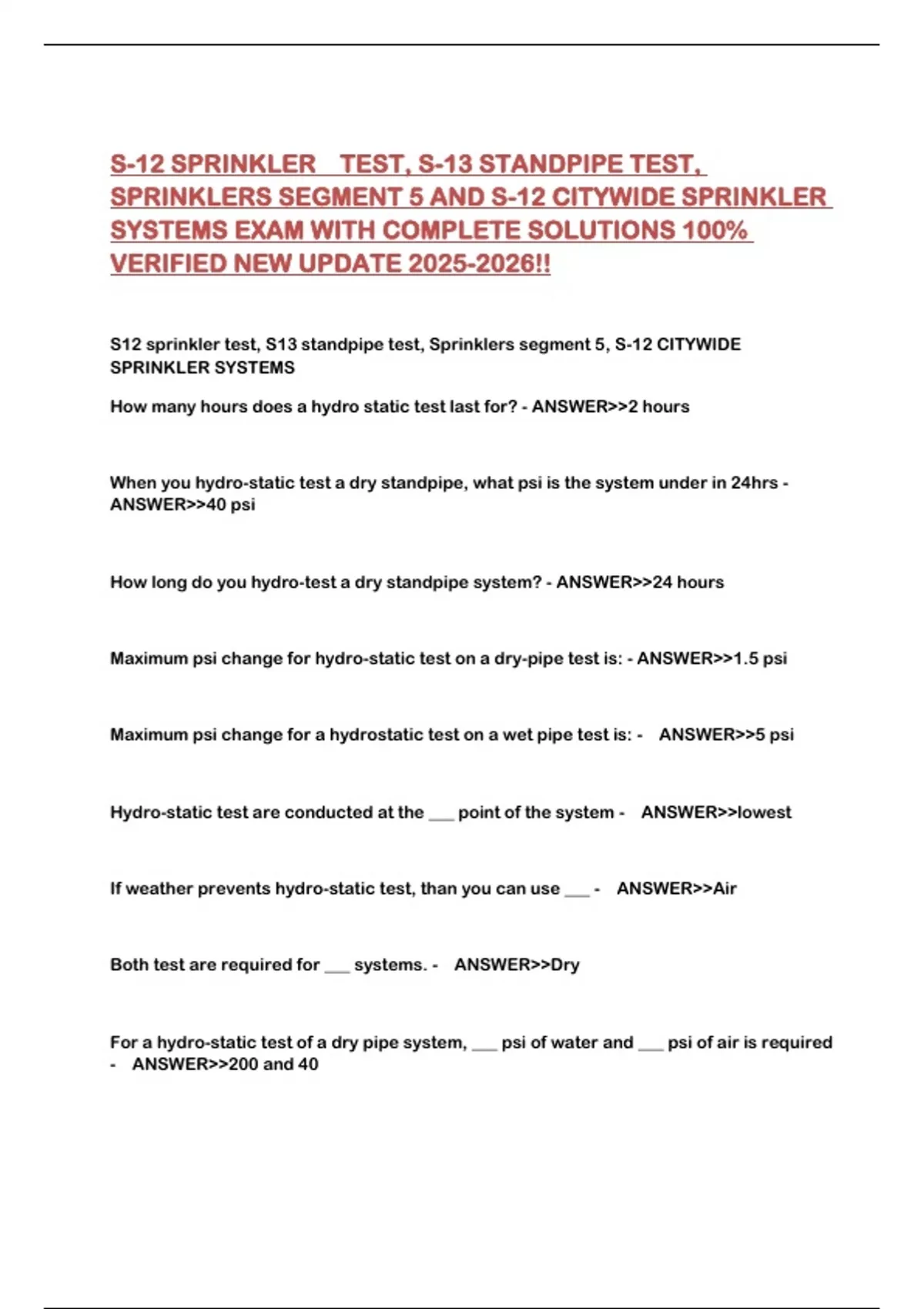 How many hours does a hydro static test last for? - ANSWER>>2 hours