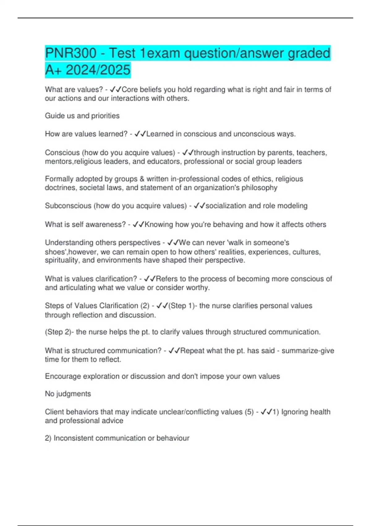 What is values clarification? - ✔️✔️Refers to the process of becoming more conscious of