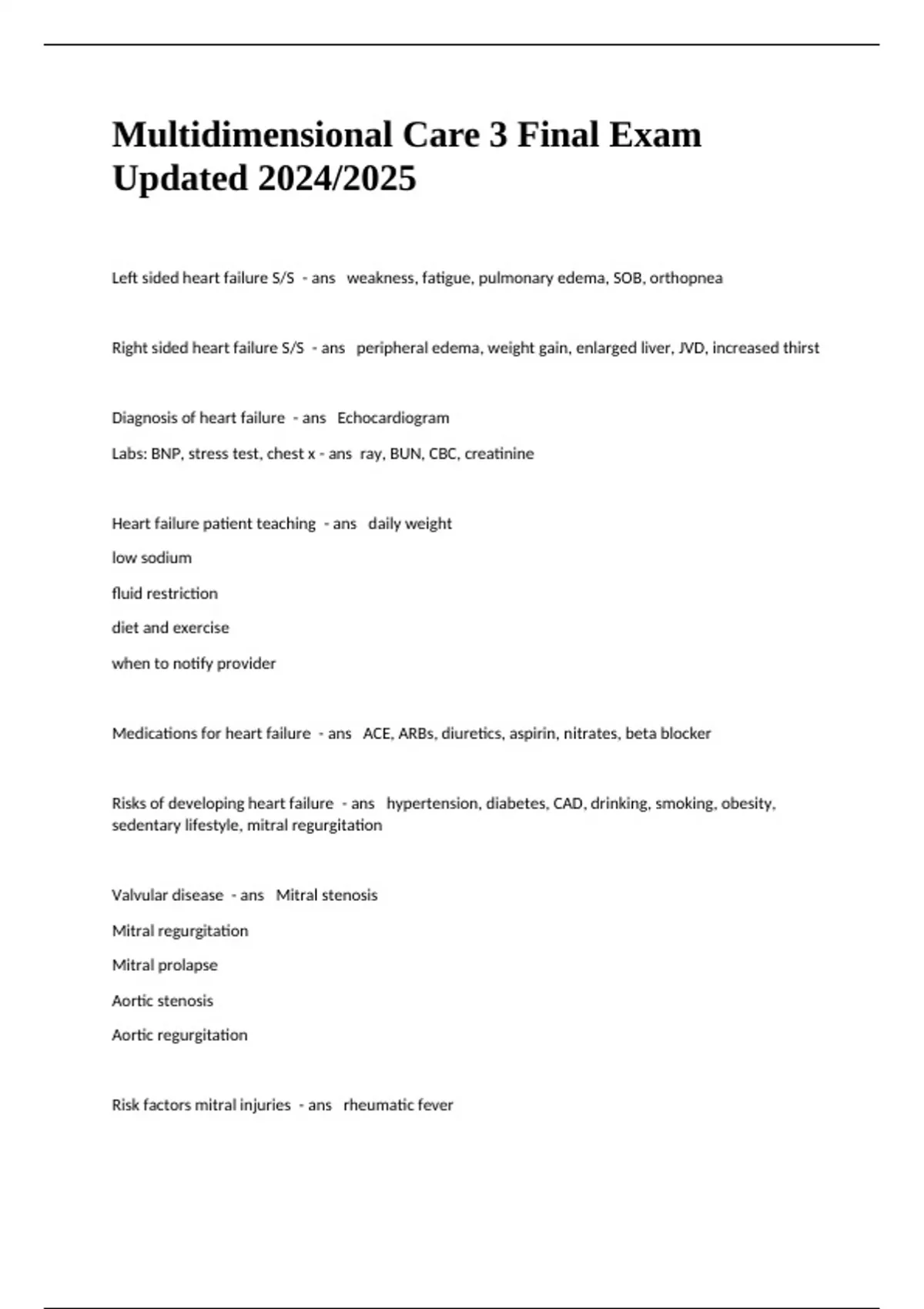Multidimensional Care 3 Final Exam