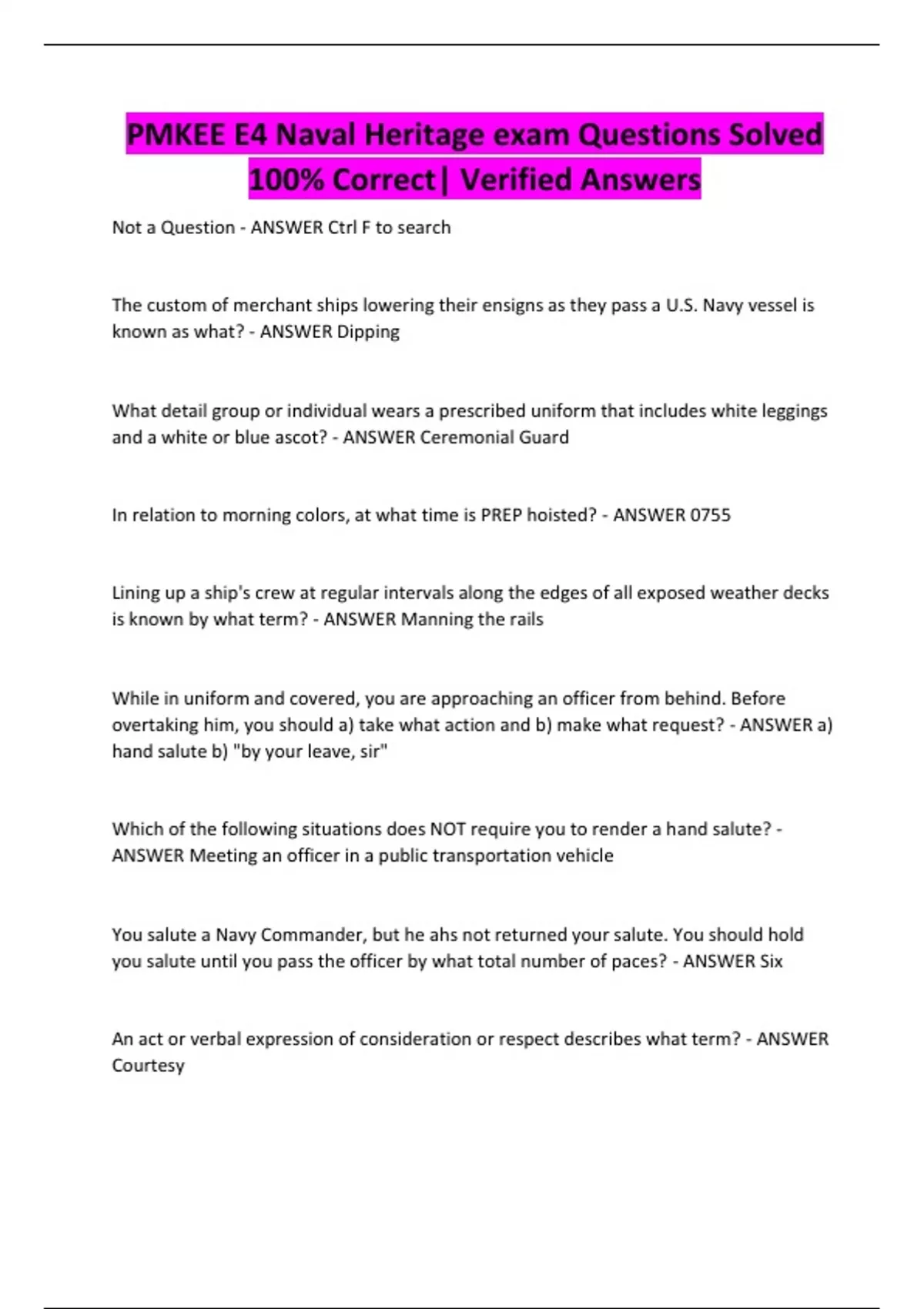 PMKEE E4 Naval Heritage exam Questions Solved 100% Correct| Verified Answers