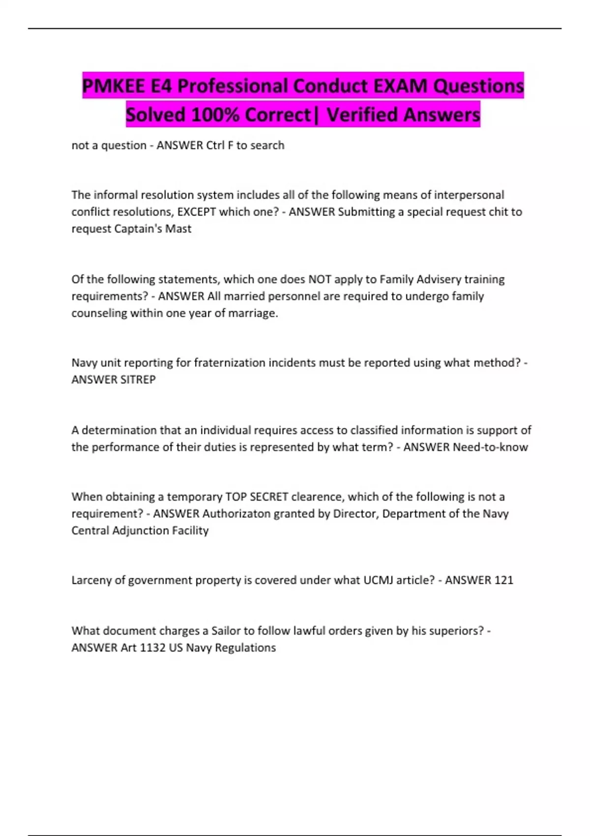 ANSWER Art 1132 US Navy Regulations