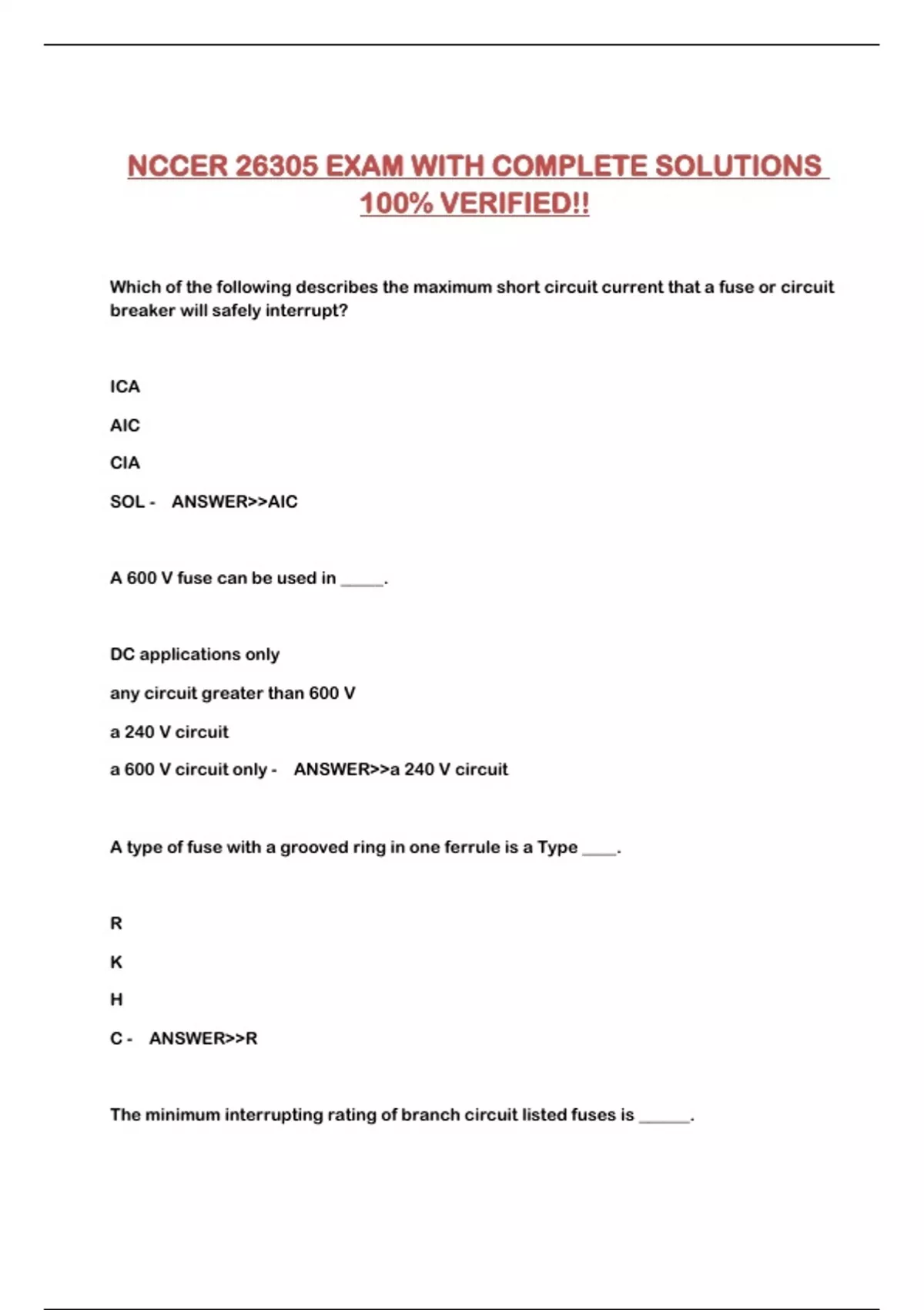 NCCER 26305 EXAM WITH COMPLETE SOLUTIONS