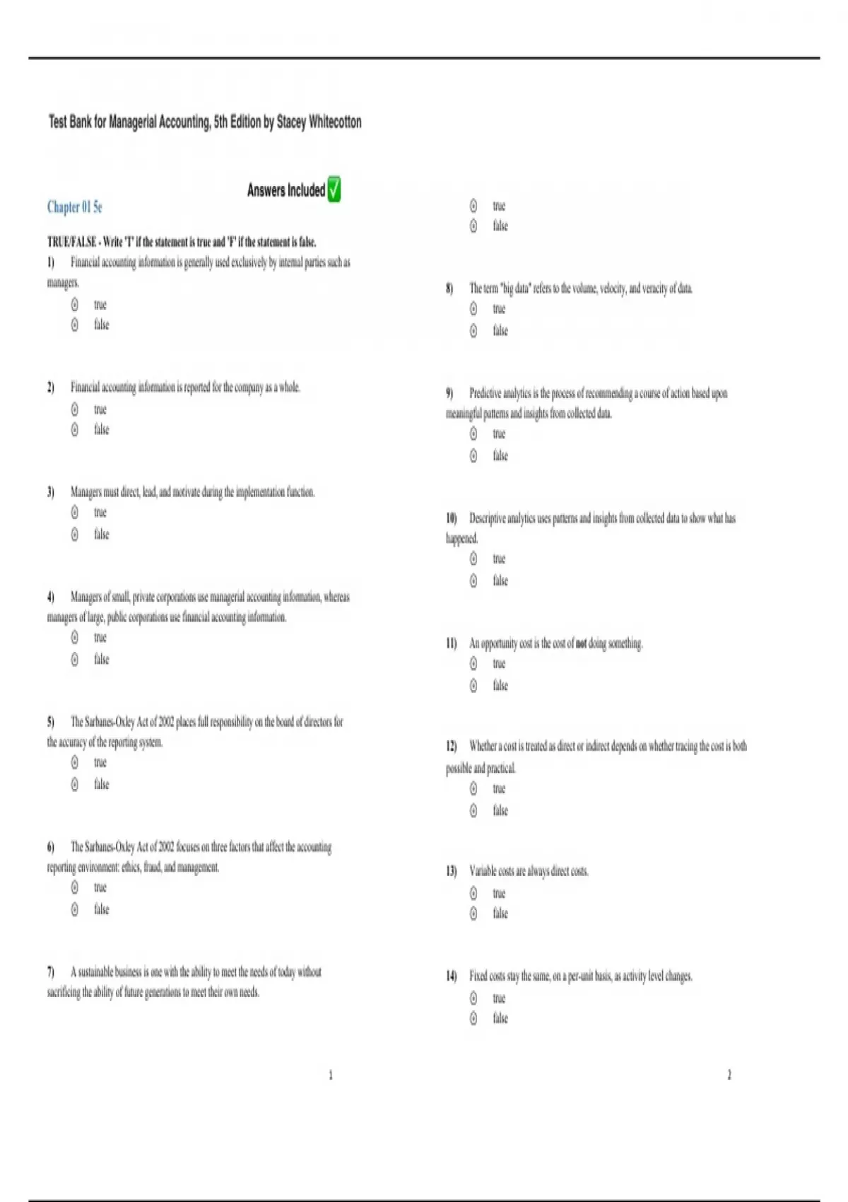 reporting environment: ethics, fraud, and management. 13) Variable costs are always direct costs.