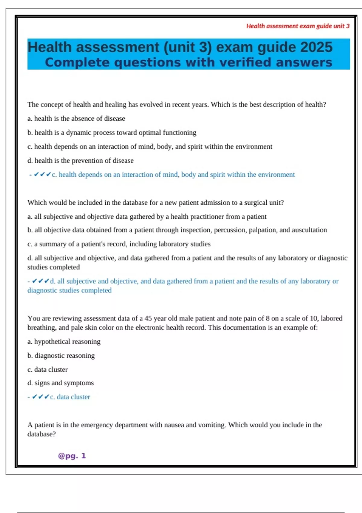 Health assessment (unit 3) exam guide 2025
