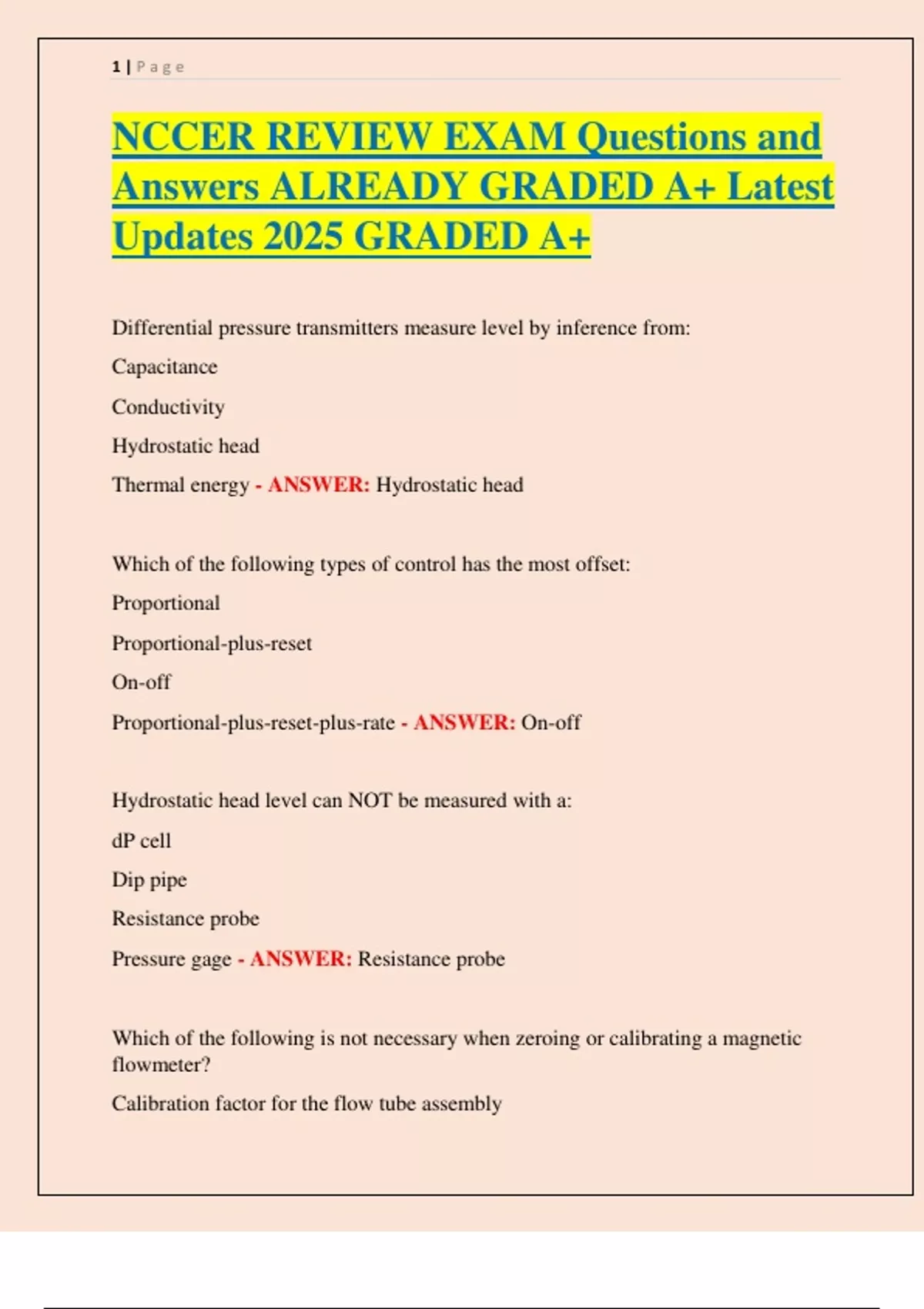 NCCER REVIEW EXAM Questions and