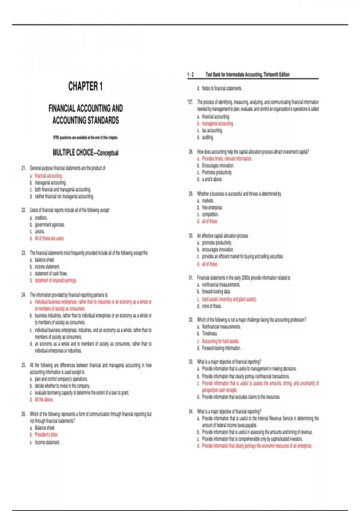 , Financial Accounting and Accounting Standards 1-3 1-4 Test Bank for Intermediate Accounting, Thirteenth Edition