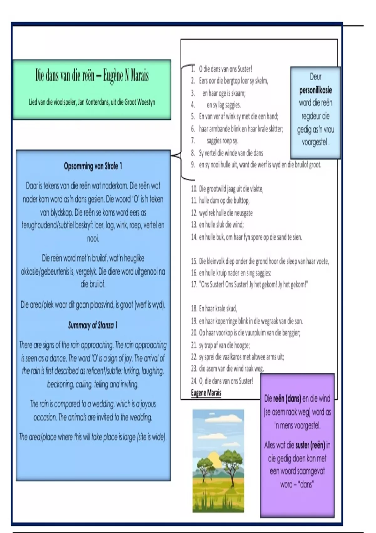 Die subtitel: Die gedig is ʼn “lied” 1. O die dans van ons Suster! respond to it. Then it starts to rain softly and