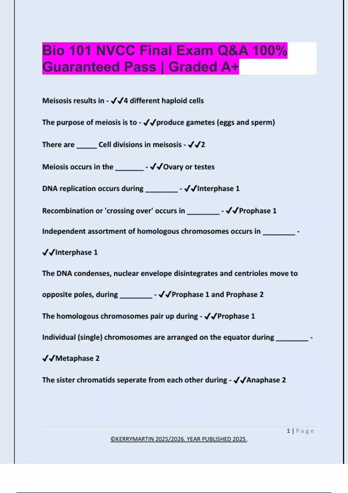 ✔✔Anaphase 1