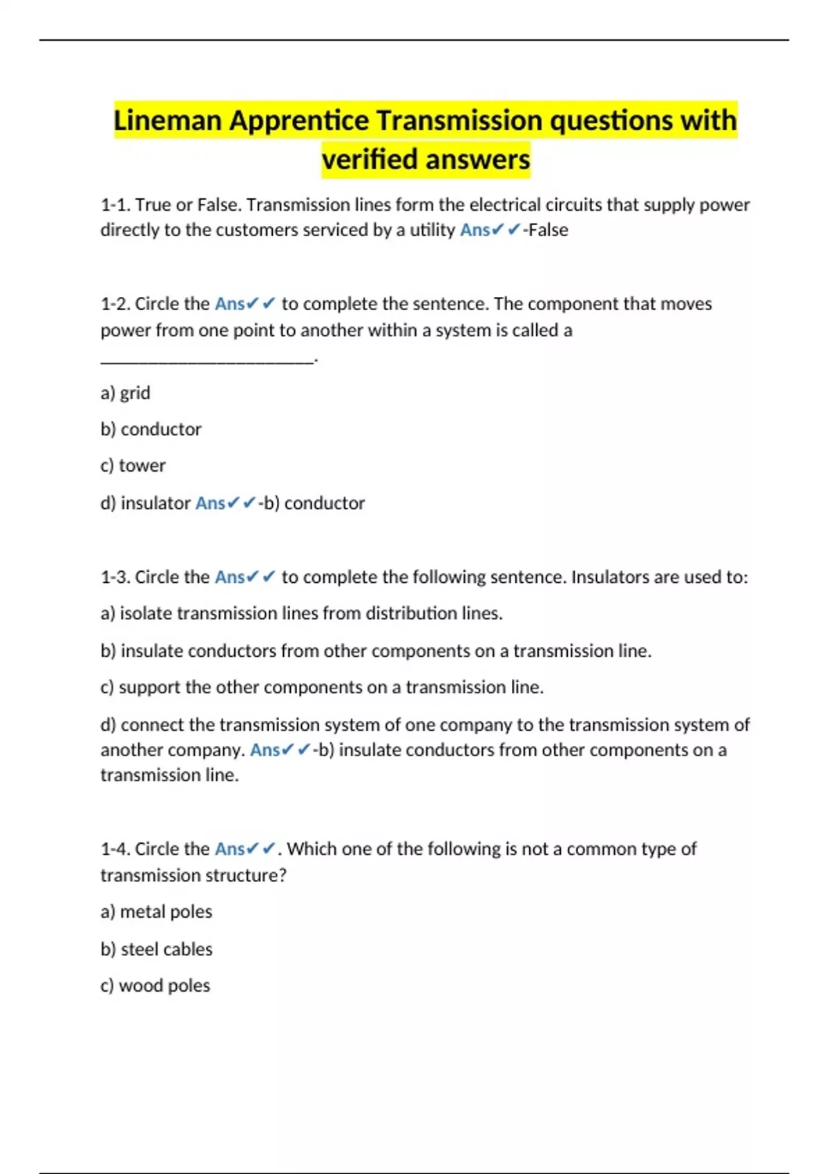 1-1. True or False. Transmission lines form the electrical circuits that supply power