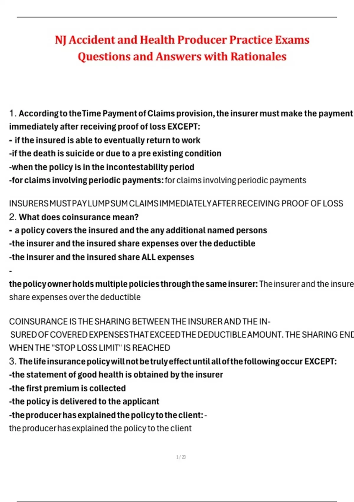 3. The life insurance policy will not be truly effect until all of the following occur EXCEPT: