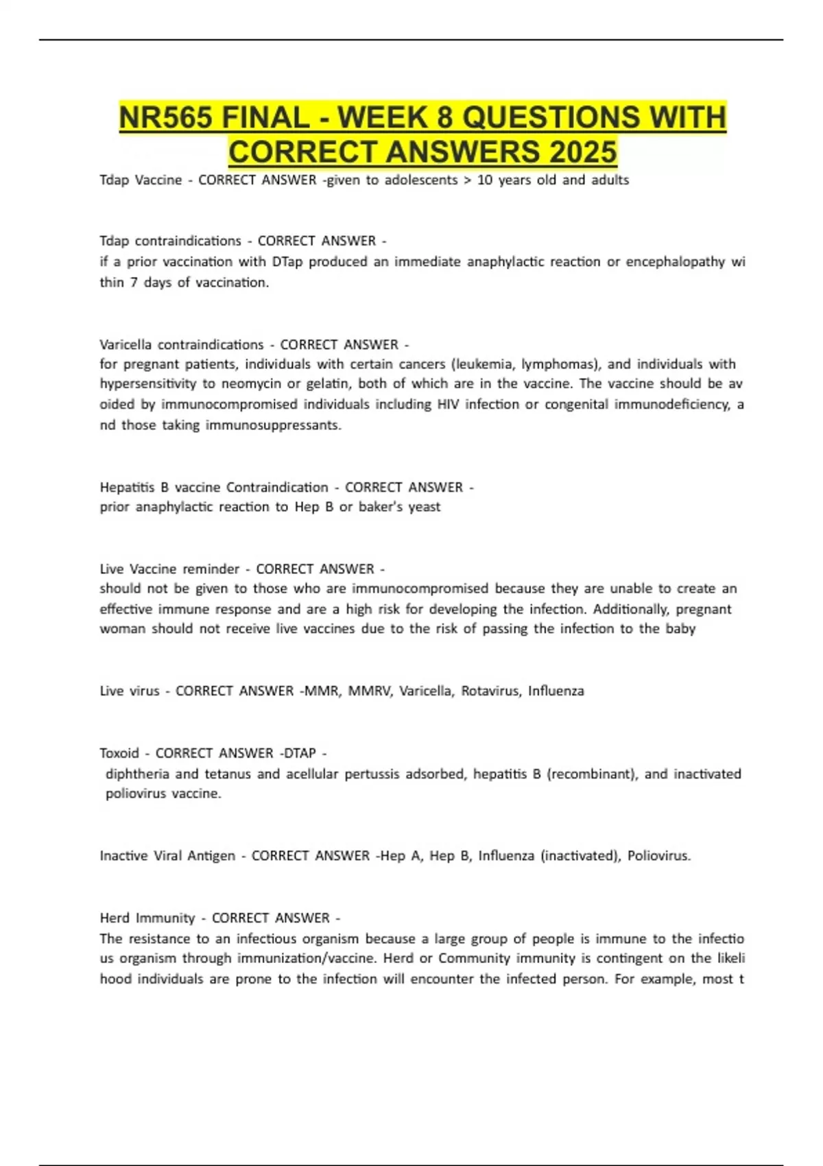 NR565 FINAL - WEEK 8 QUESTIONS WITH