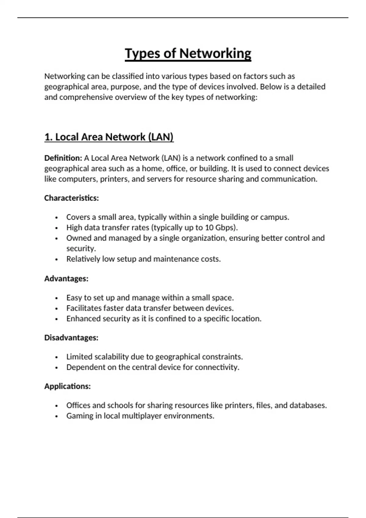 1. Local Area Network (LAN)