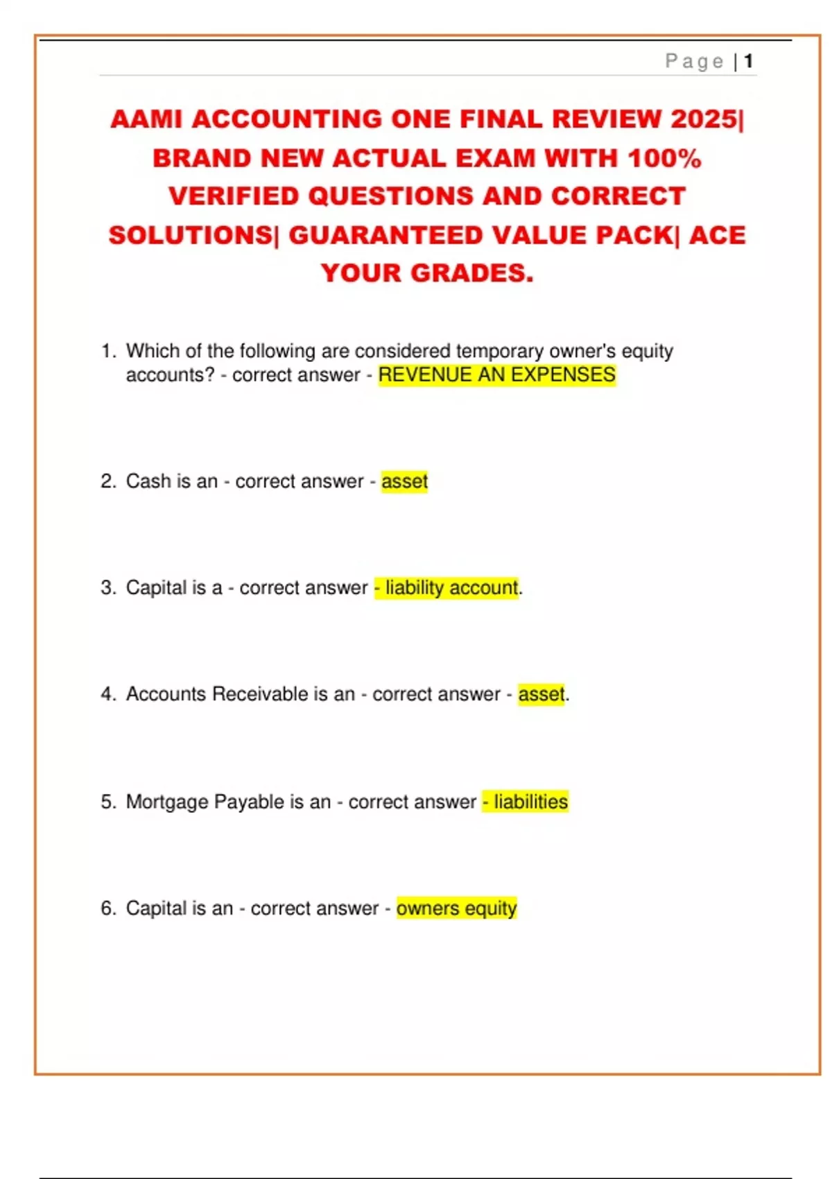 AAMI ACCOUNTING ONE FINAL REVIEW 2025|