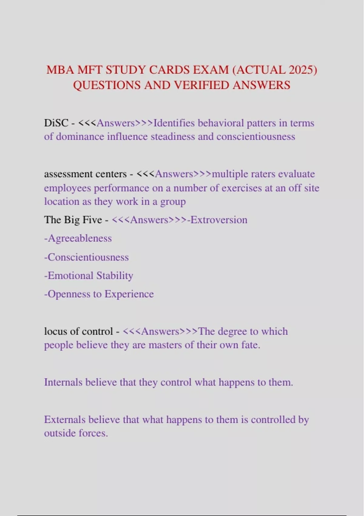 MBA MFT STUDY CARDS EXAM (ACTUAL 2025) QUESTIONS AND VERIFIED ANSWERS