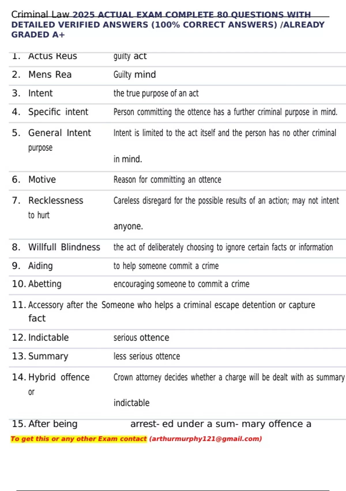 , Criminal Law 2025 ACTUAL EXAM COMPLETE 80 QUESTIONS WITH