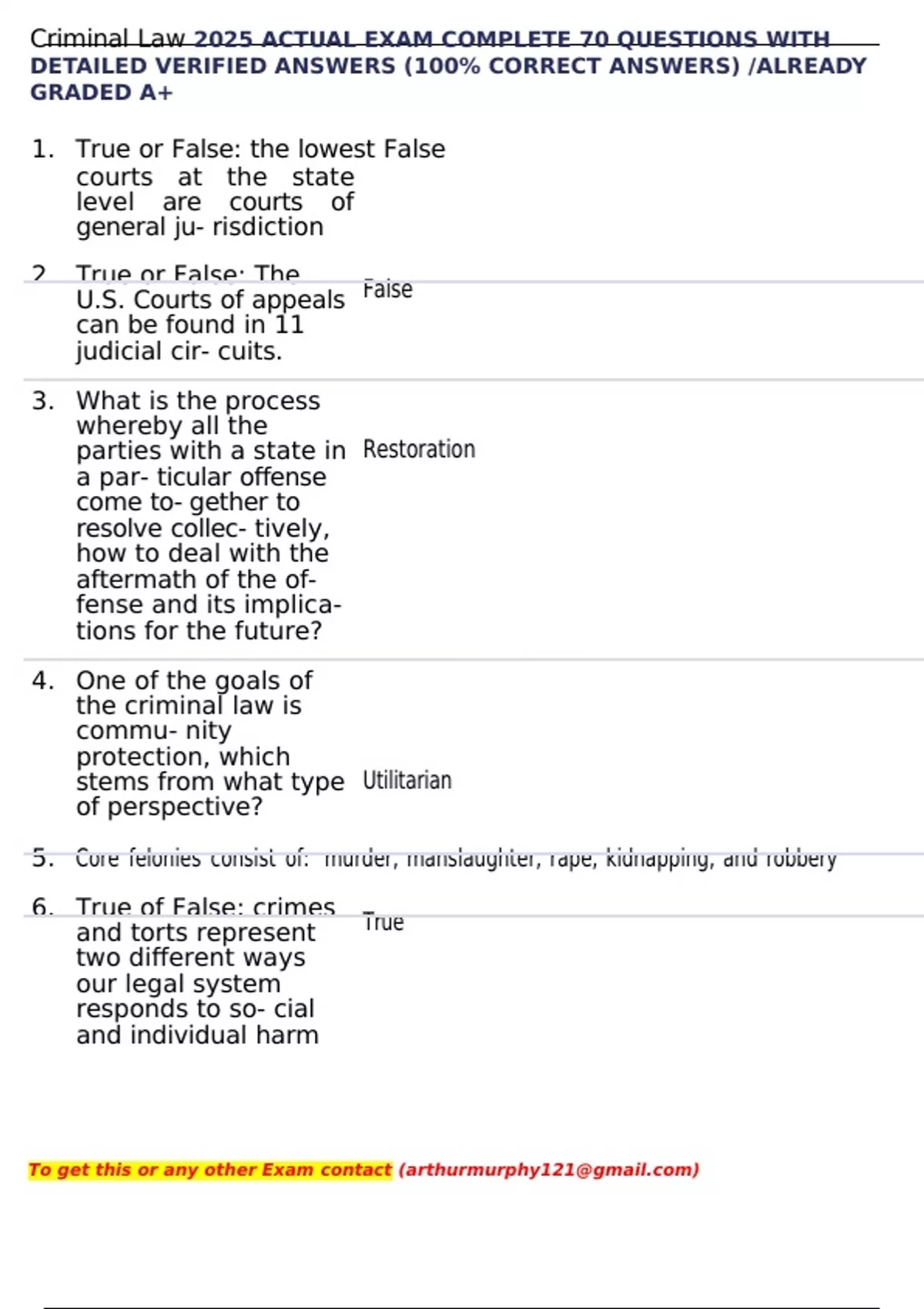 , Criminal Law 2025 ACTUAL EXAM COMPLETE 70 QUESTIONS WITH