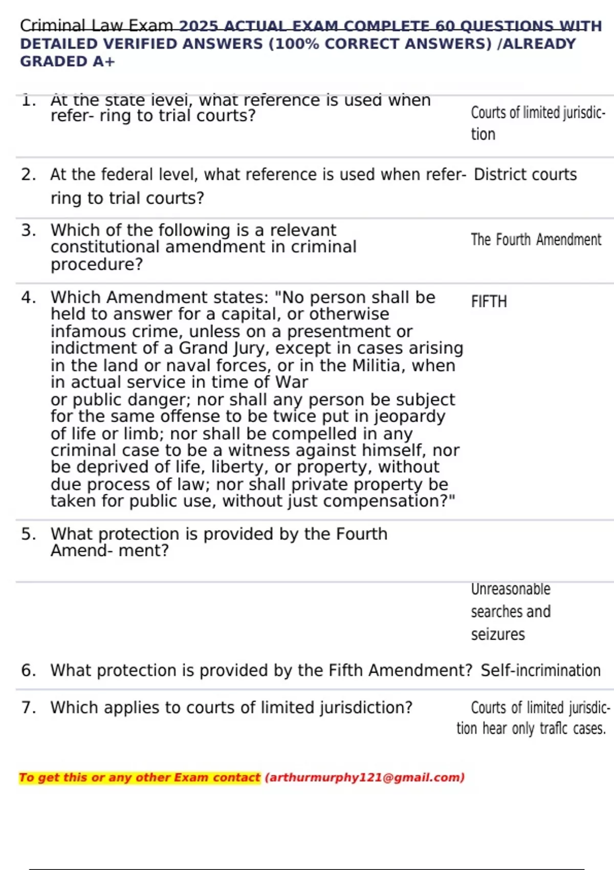 , Criminal Law Exam 2025 ACTUAL EXAM COMPLETE 60 QUESTIONS WITH