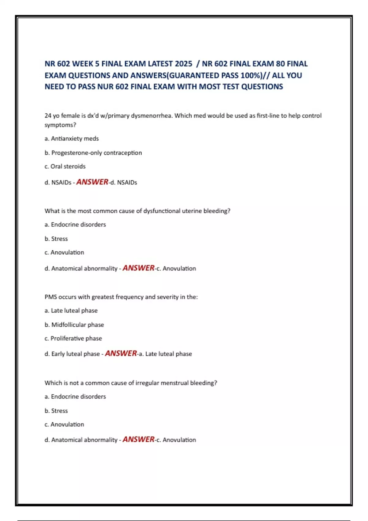 NEED TO PASS NUR 602 FINAL EXAM WITH MOST TEST QUESTIONS