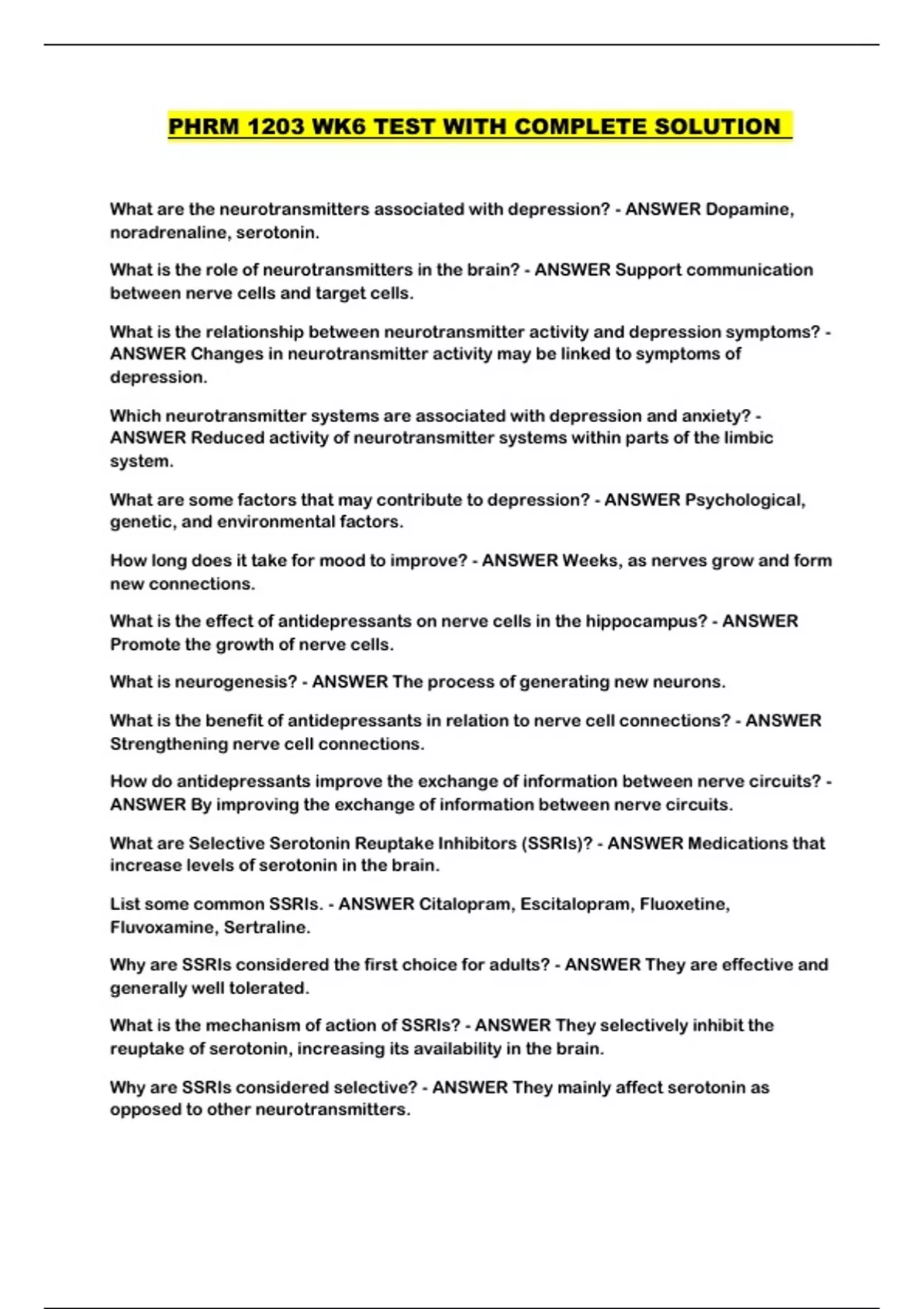 PHRM 1203 WK6 TEST WITH COMPLETE SOLUTION ...