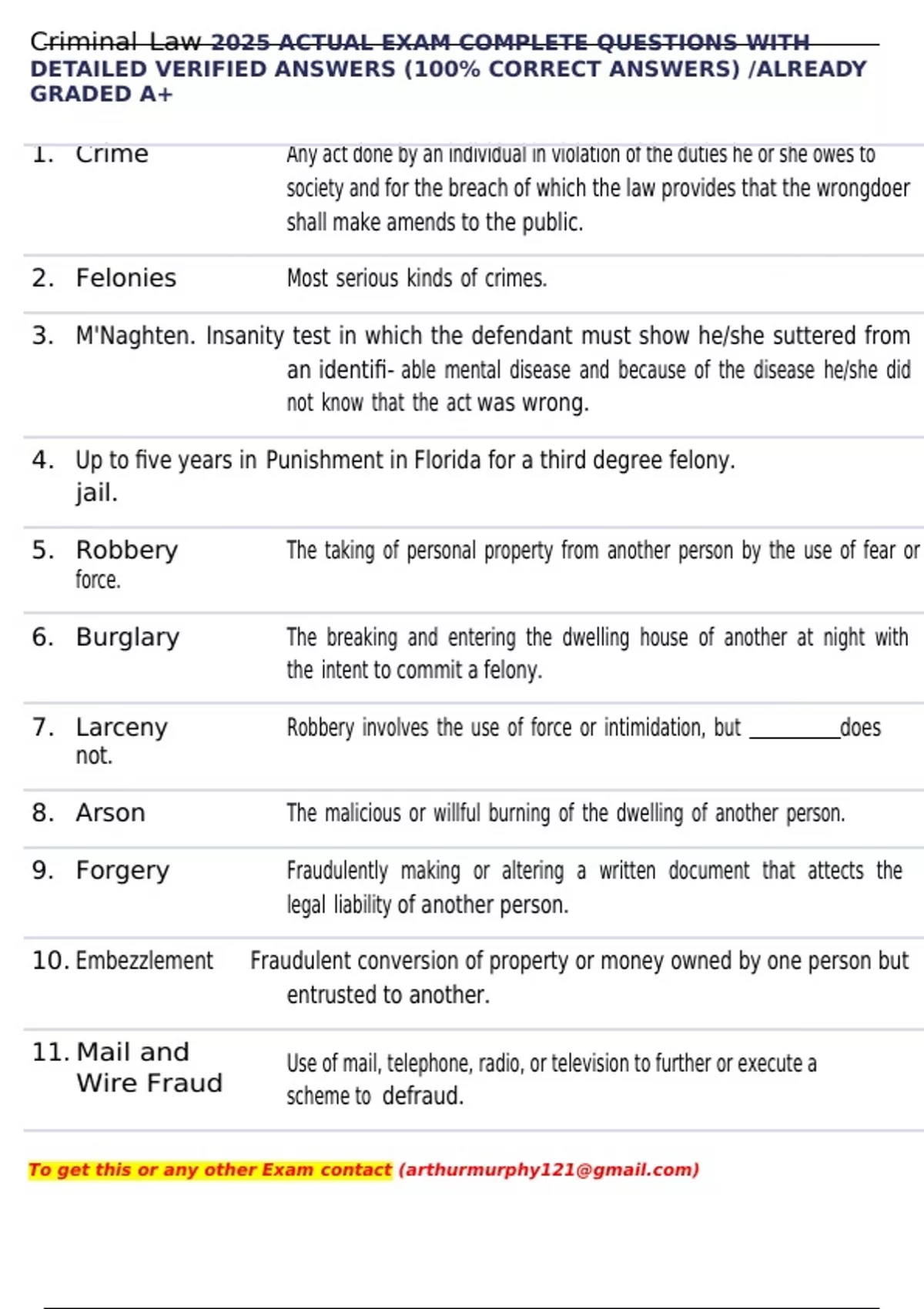 Criminal Law 2025 ACTUAL EXAM COMPLETE QUESTIONS WITH