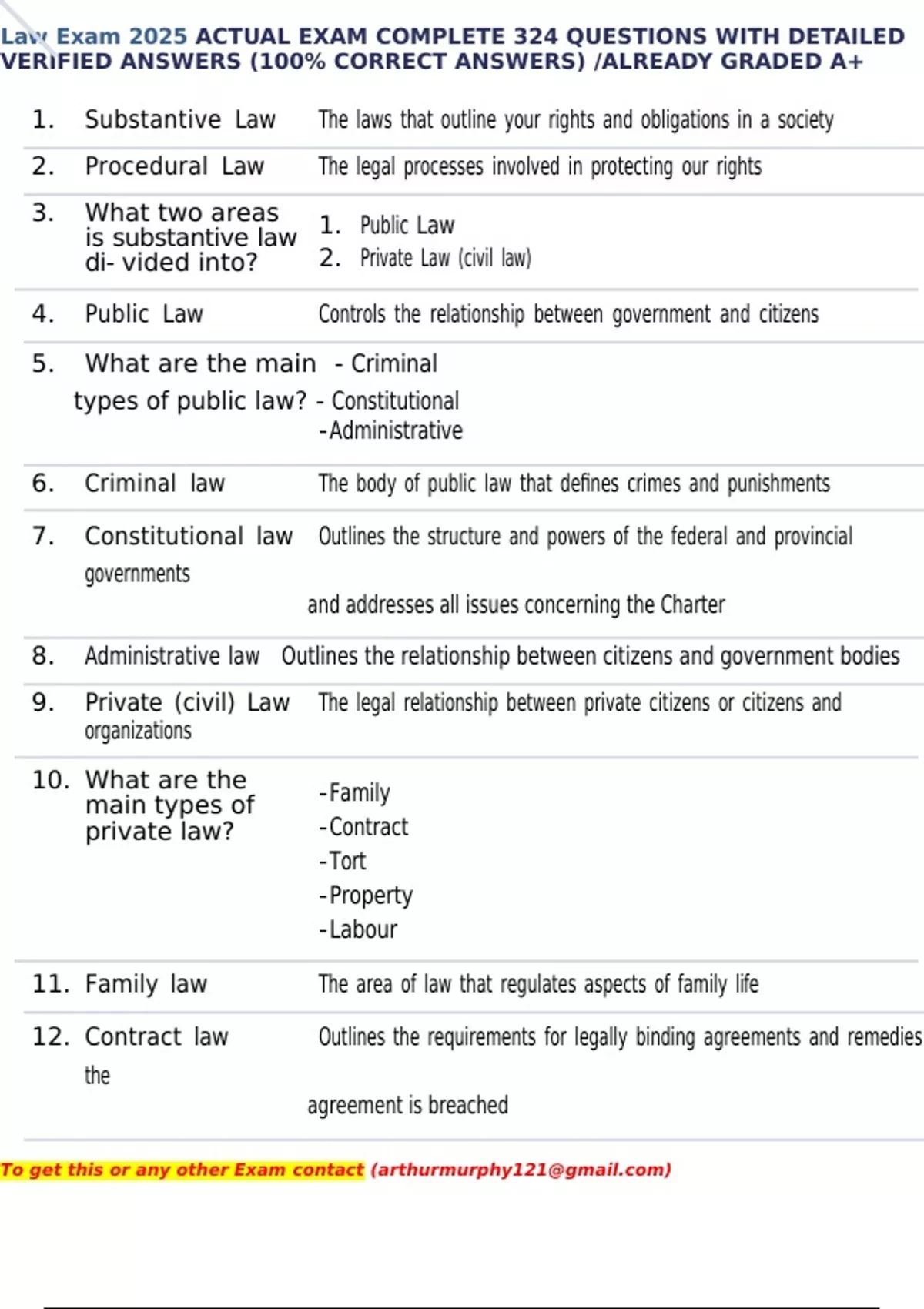 Law Exam 2025 ACTUAL EXAM COMPLETE 324 QUESTIONS WITH DETAILED