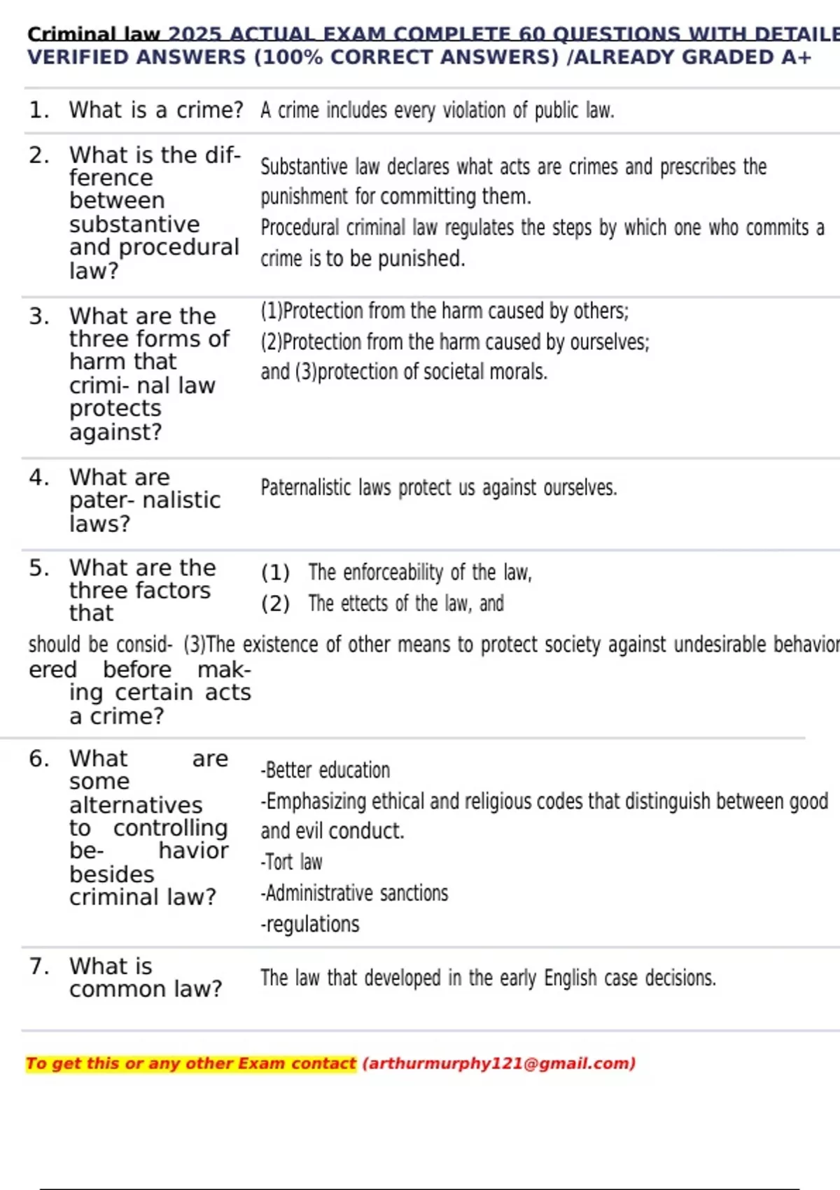 Criminal law 2025 ACTUAL EXAM COMPLETE 60 QUESTIONS WITH DETAILE