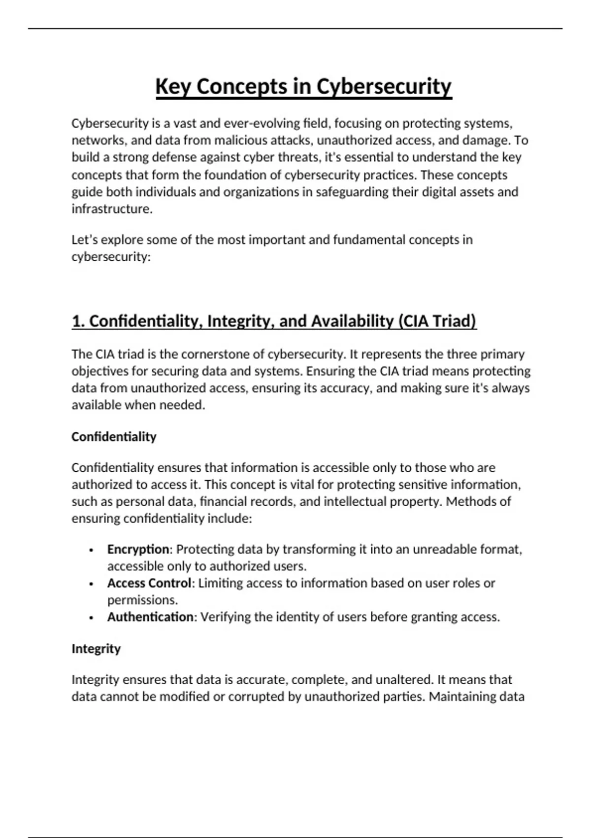 1. Confidentiality, Integrity, and Availability (CIA Triad)
