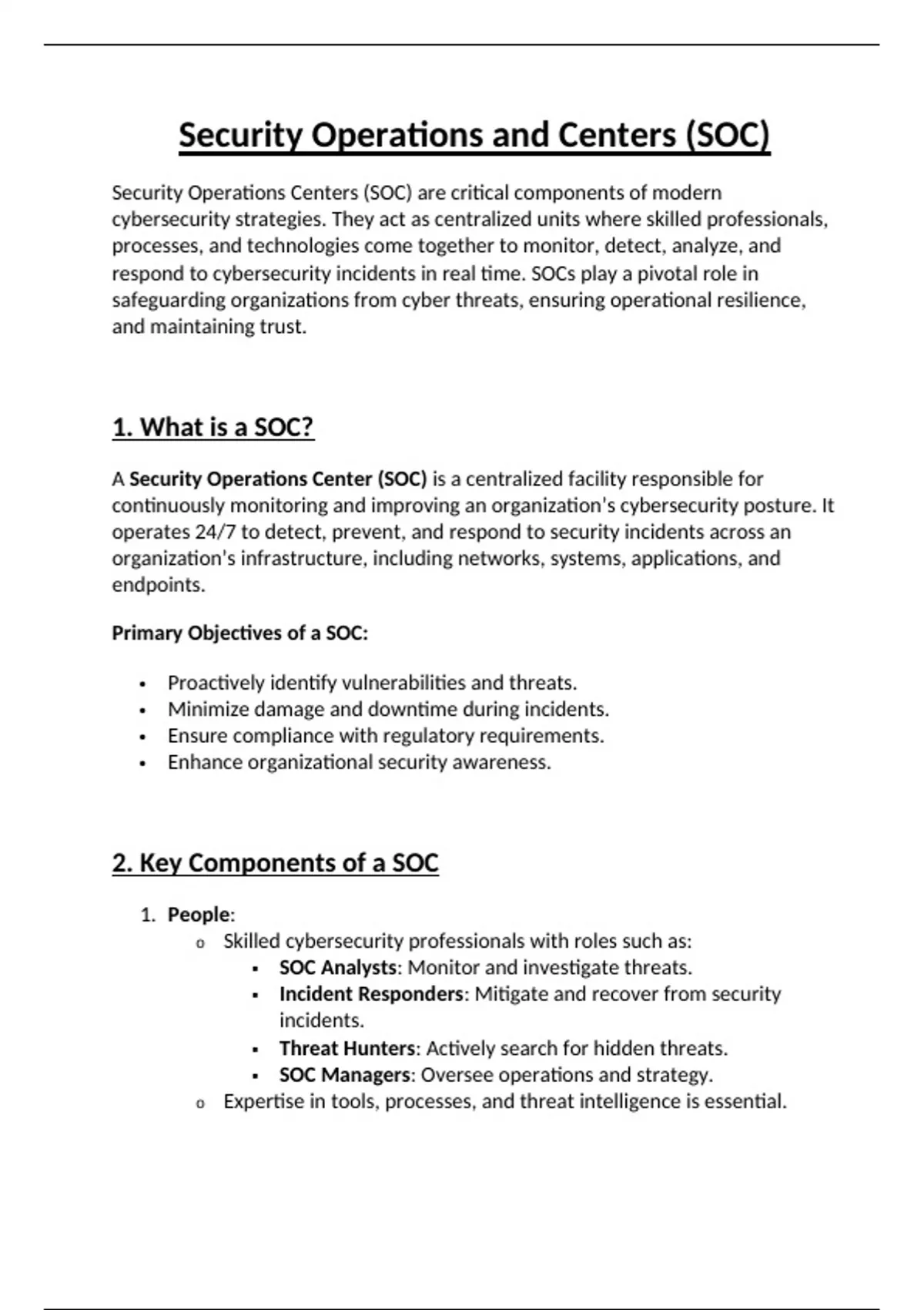 A Security Operations Center (SOC) is a centralized facility responsible for