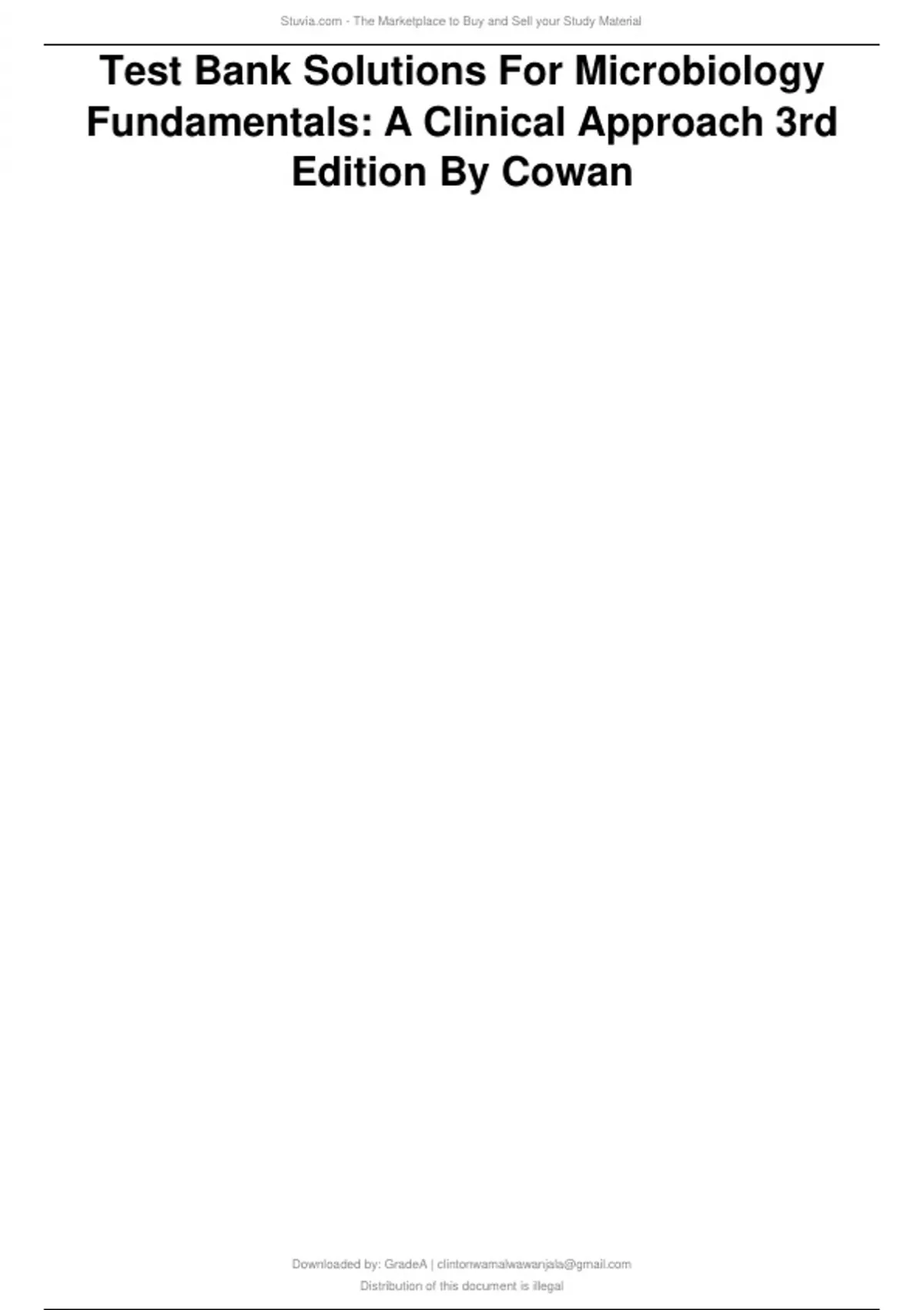 Test Bank Solutions For Microbiology Fundamentals: A Clinical Approach 3rd Edition By Cowan