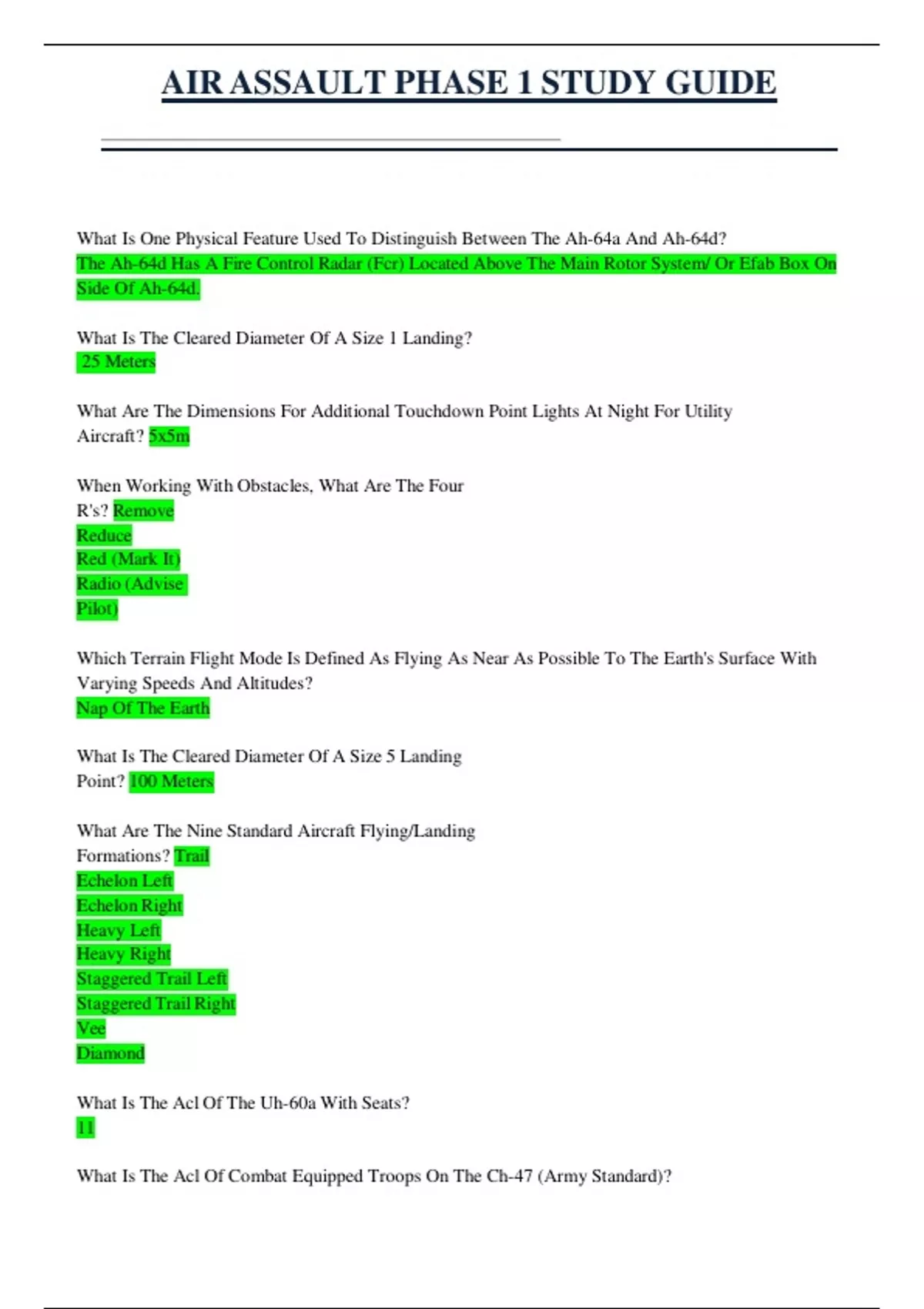 AIR ASSAULT PHASE 1 STUDY GUIDE