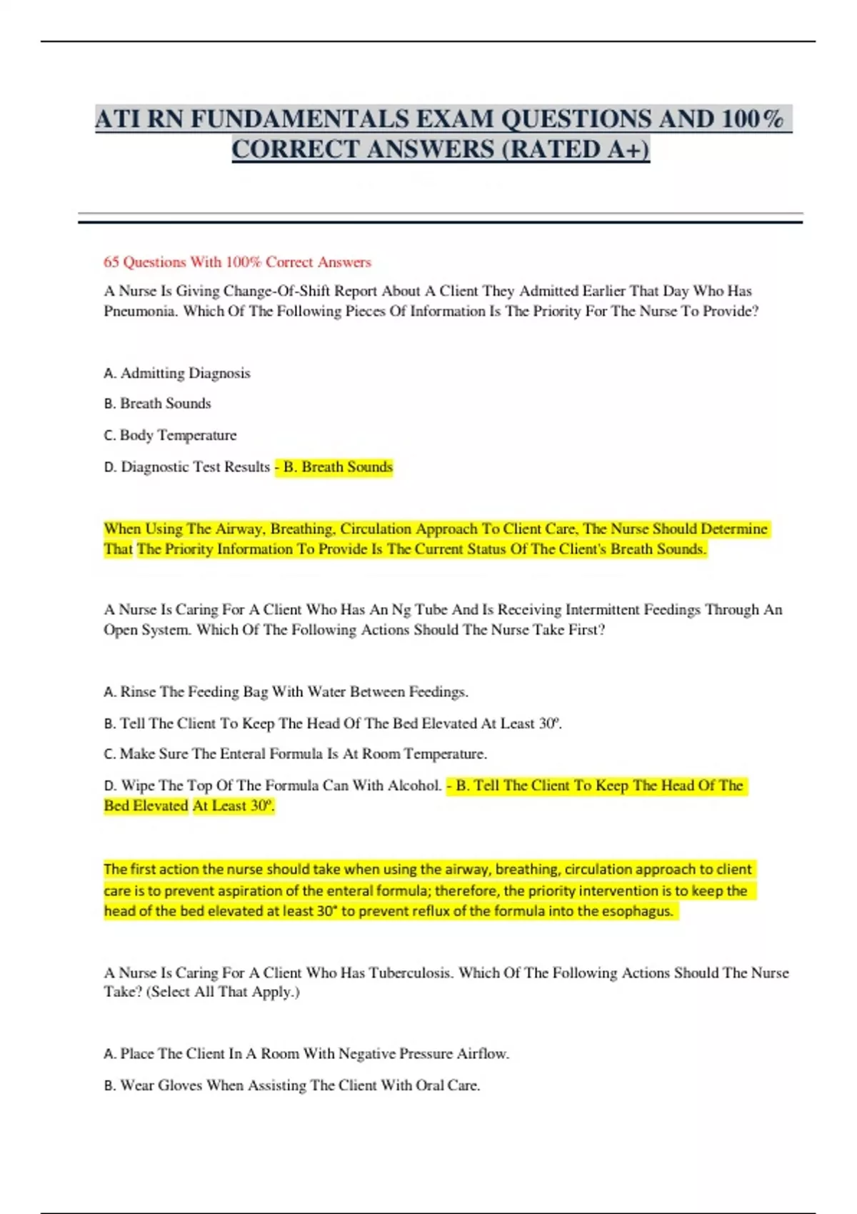ATI RN FUNDAMENTALS EXAM QUESTIONS AND 100% CORRECT ANSWERS (RATED A+)