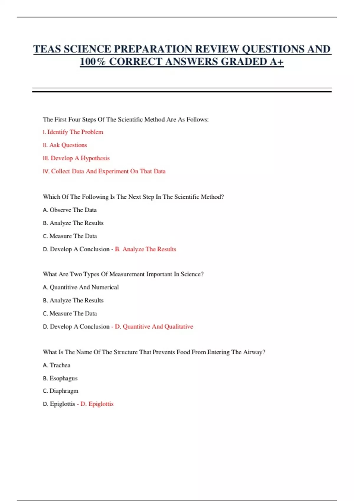 TEAS SCIENCE PREPARATION REVIEW QUESTIONS AND