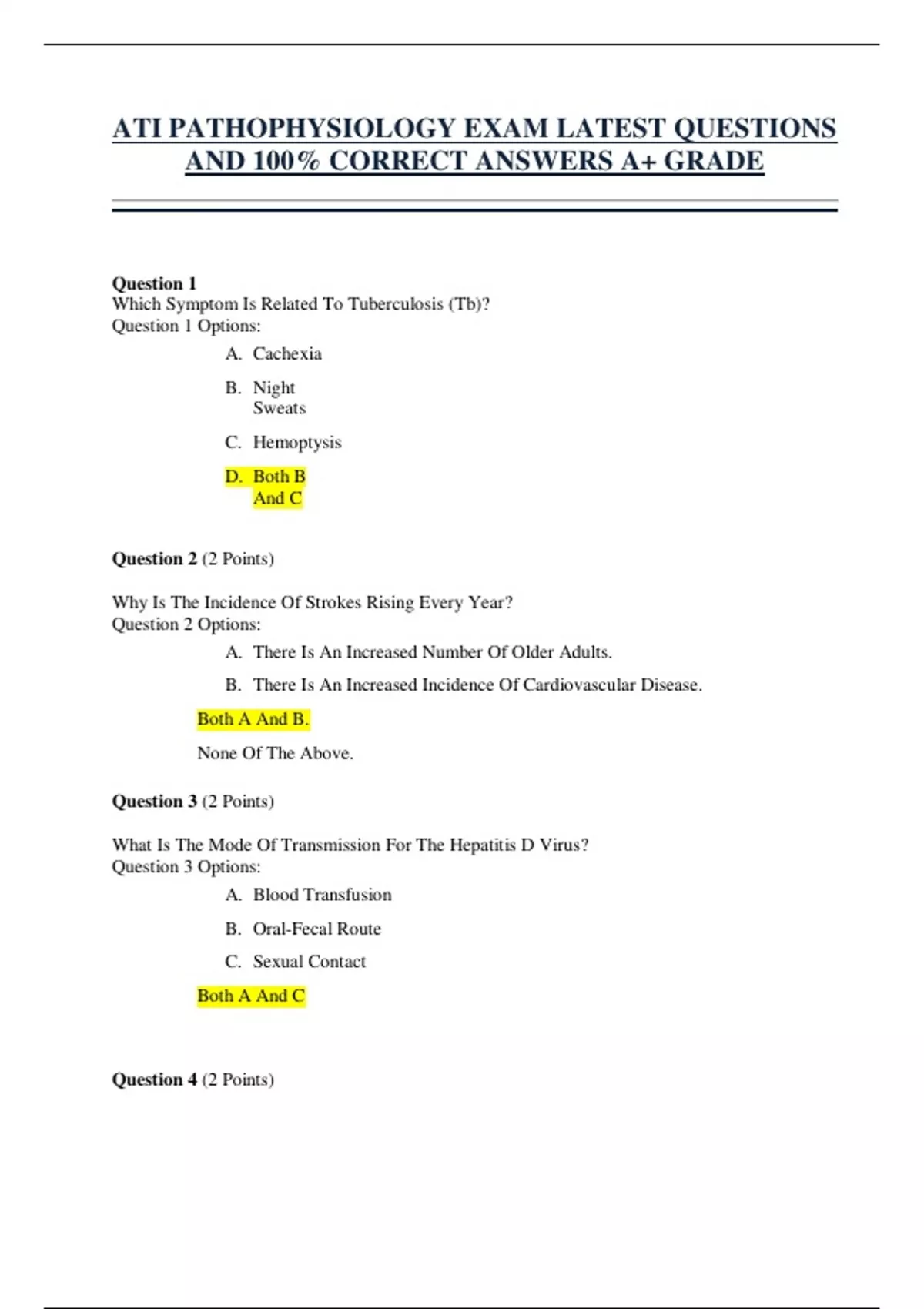 ATI PATHOPHYSIOLOGY EXAM LATEST QUESTIONS