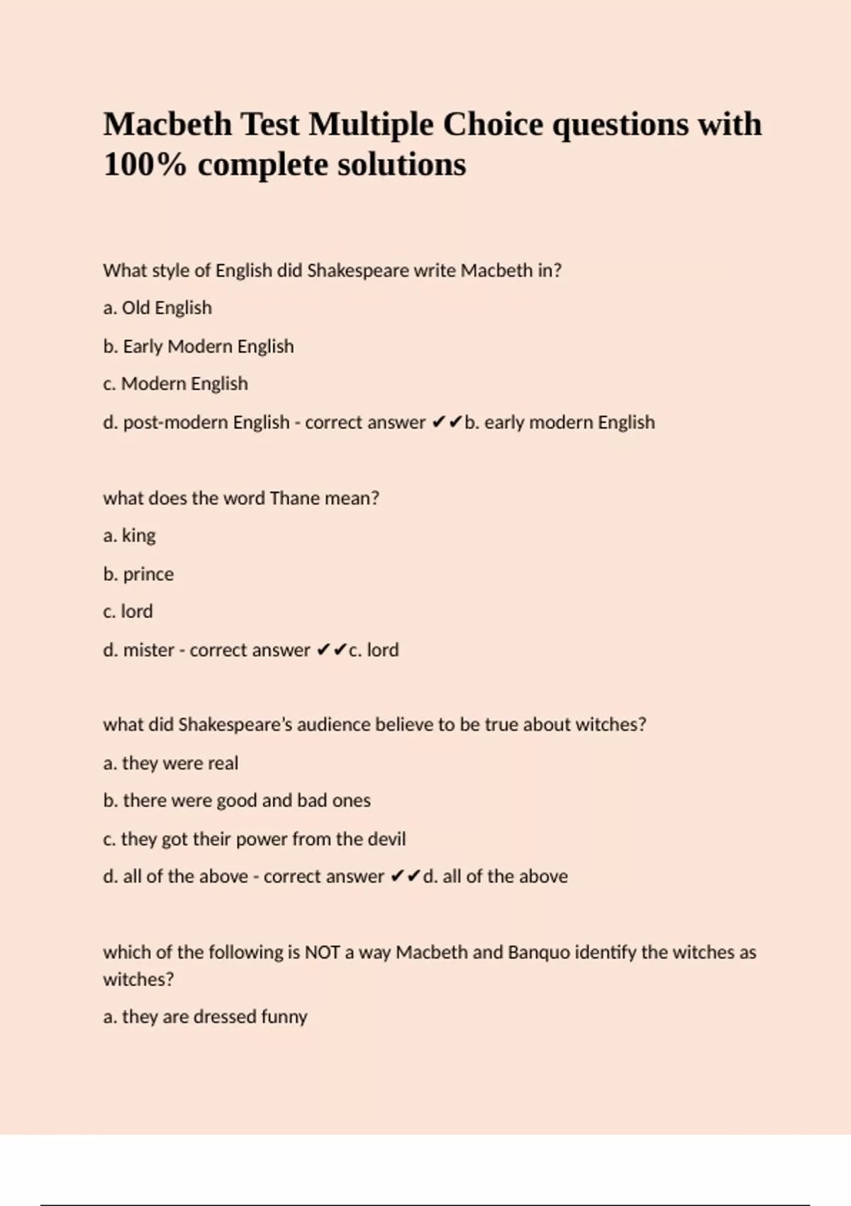Macbeth Test Multiple Choice questions with 100% complete solutions