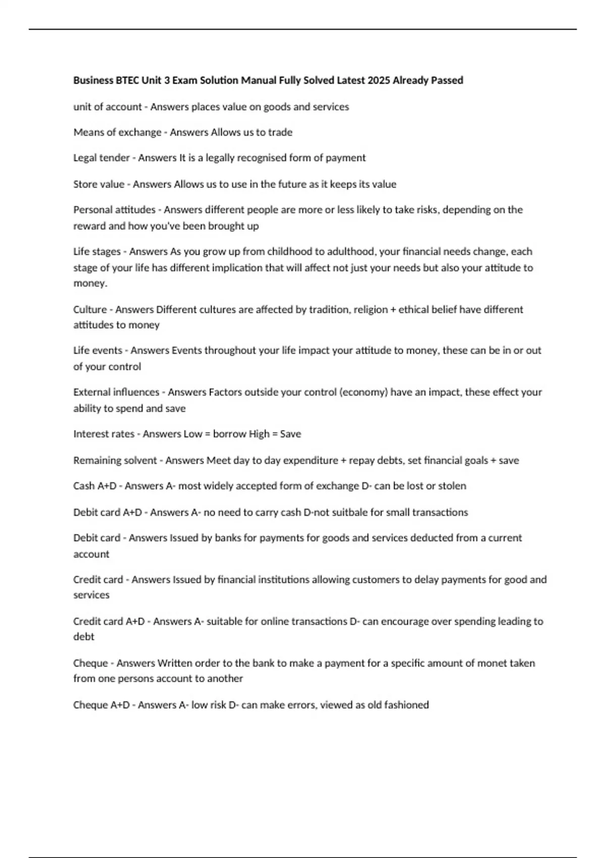 Credit card A+D - Answers A- suitable for online transactions D- can encourage over spending leading to