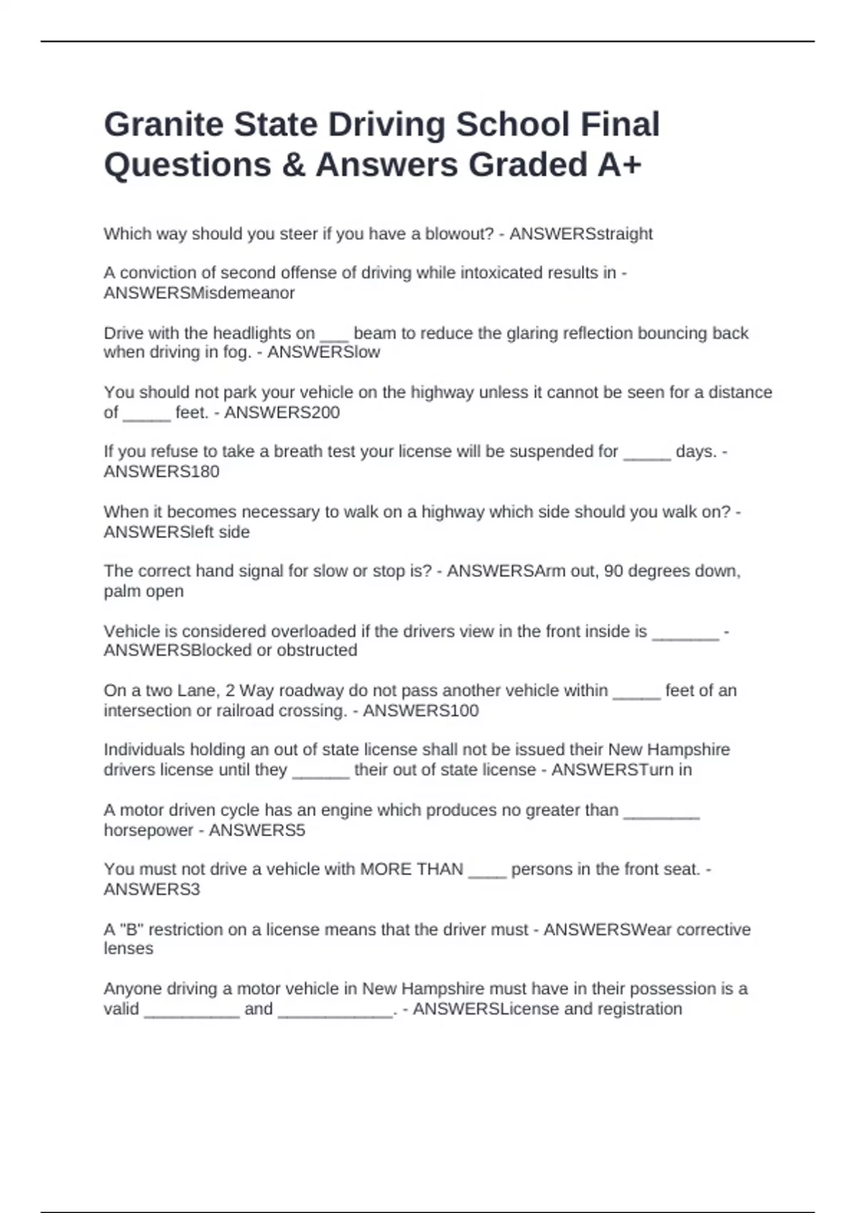 Questions & Answers Graded A+