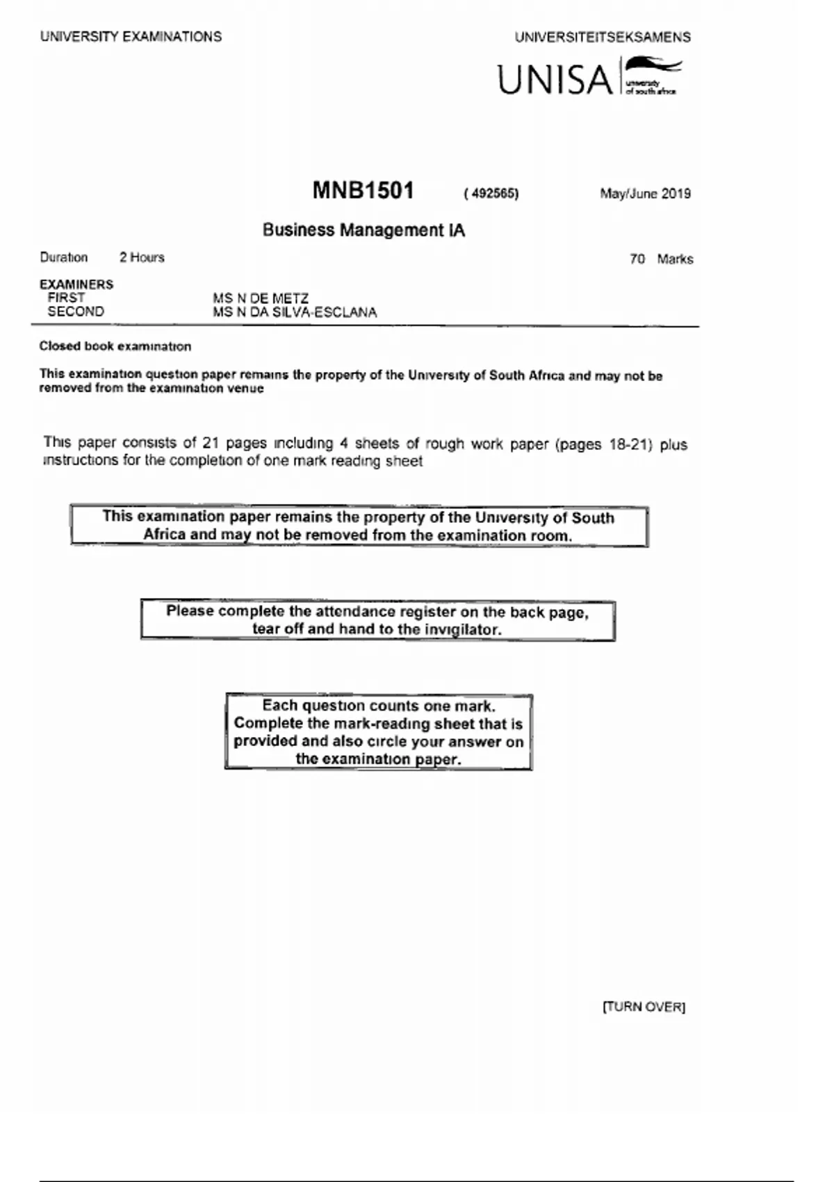 - 1st Years Semester 1 MNB1501, Pass papers MB (MNB1501)