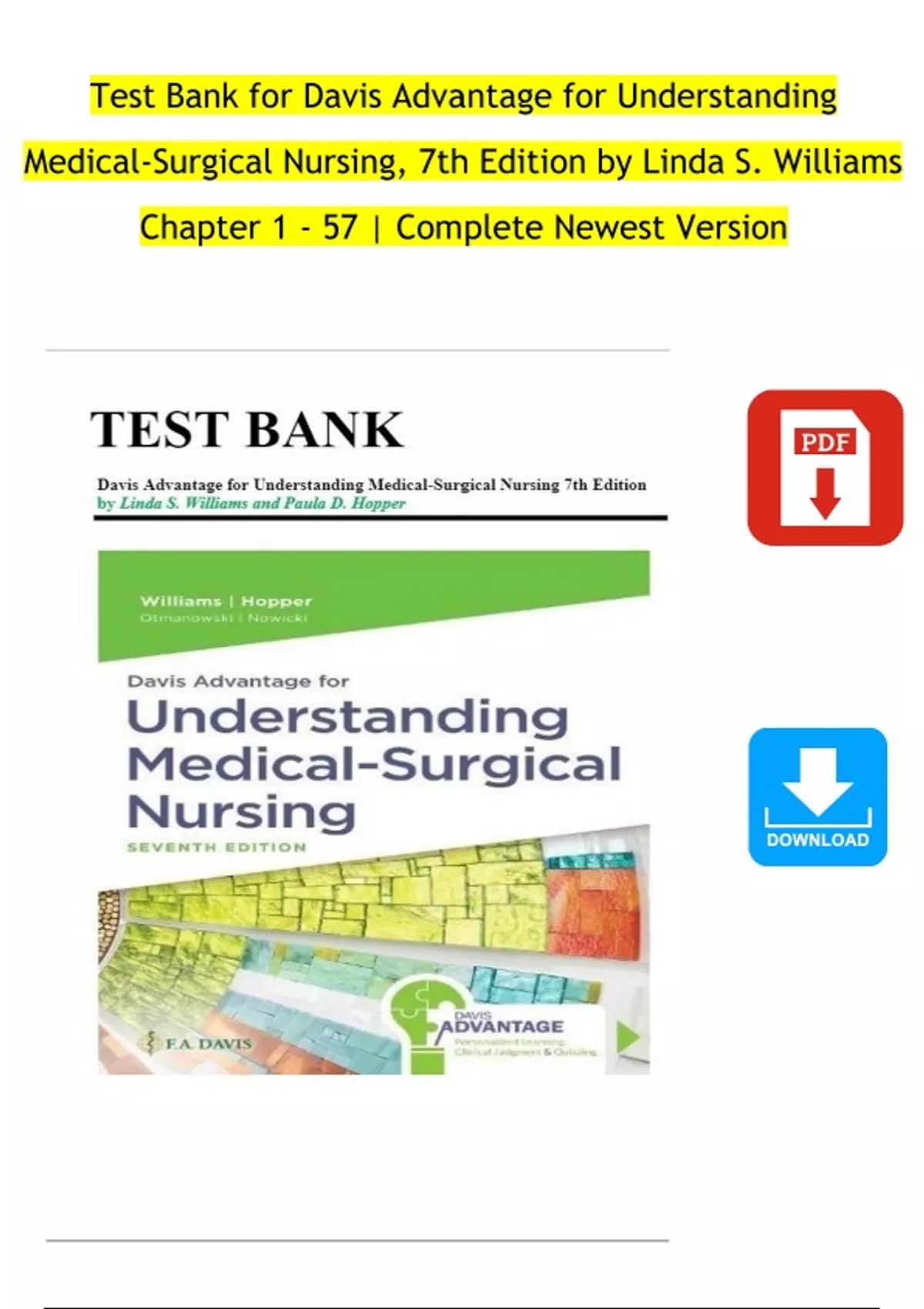 Test Bank for Davis Advantage for Understanding Medical-Surgical Nursing , 7th Edition Linda S. Williams