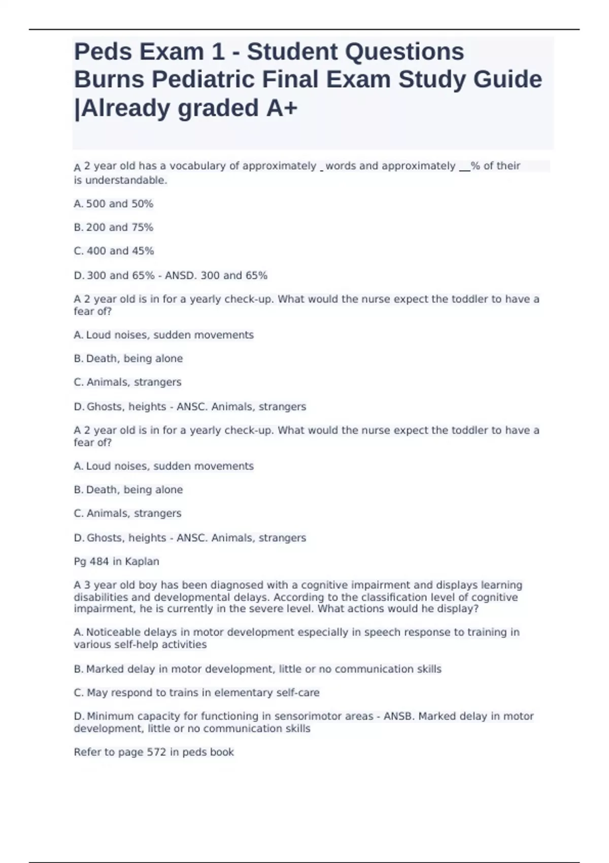 ,Peds Exam 1 - Student Questions