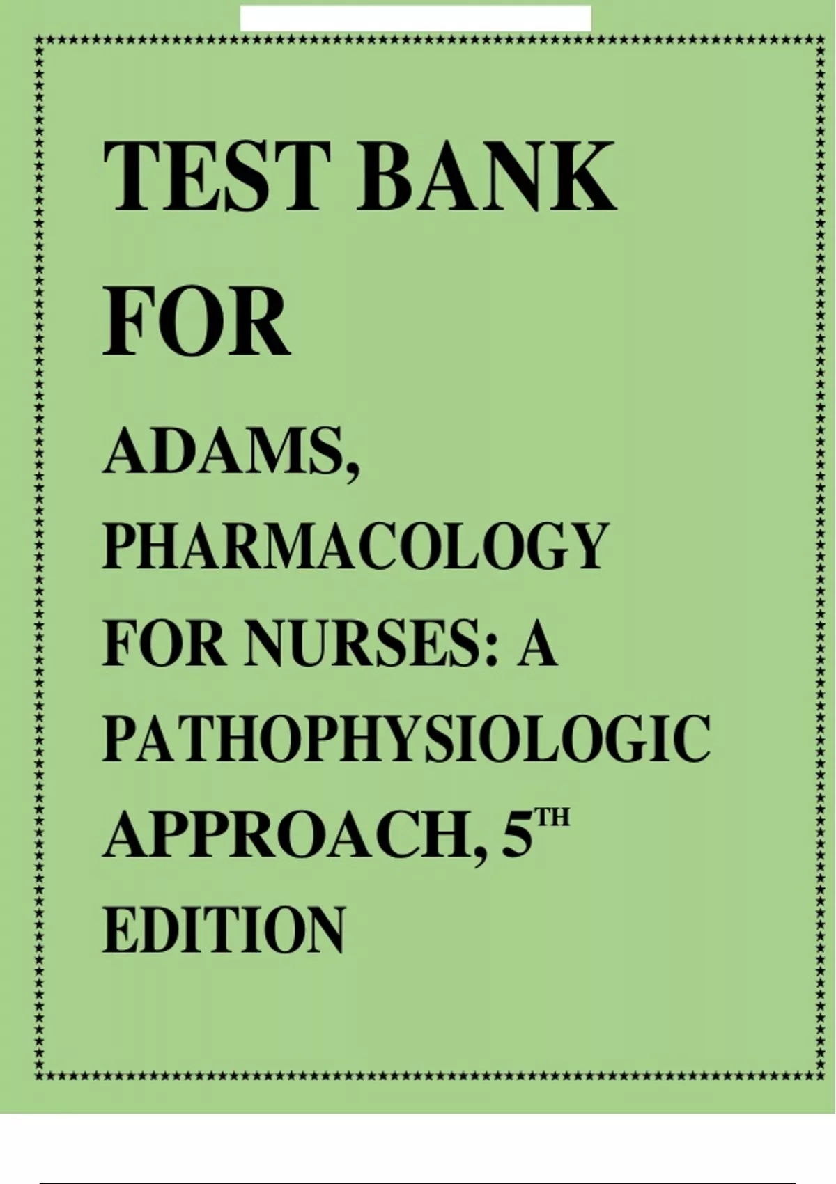 Pharmacology for Nurses: A Pathophysiologic Approach – Test Bank | 5th Edition | Adams et al. | Complete Exam Prep Resource